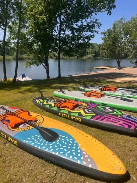Комплекс отдыха расположен на берегу озера и предлагает гостям множество увлекательных возможностей для водного досуга. Доступны в прокат sup-борды, чтобы насладиться красотой окружающей природы, а любители более активного отдыха могут совершить прогулку на катамаранах.