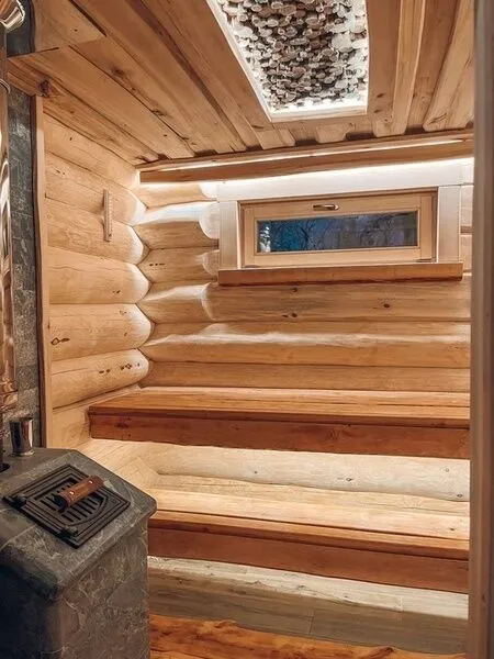 Русская баня на дровах в уютной атмосфере деревянного сруба. Парная оборудована потолком из ароматного можжевельника, а дровяная печь из талькохлорита обеспечивает максимальный пар и тепло для полноценного банного ритуала.