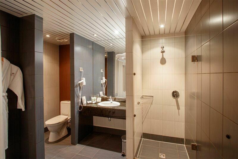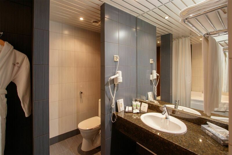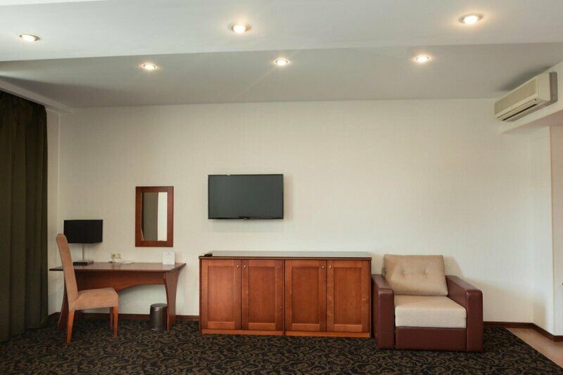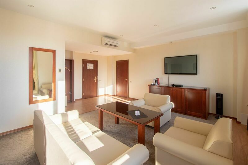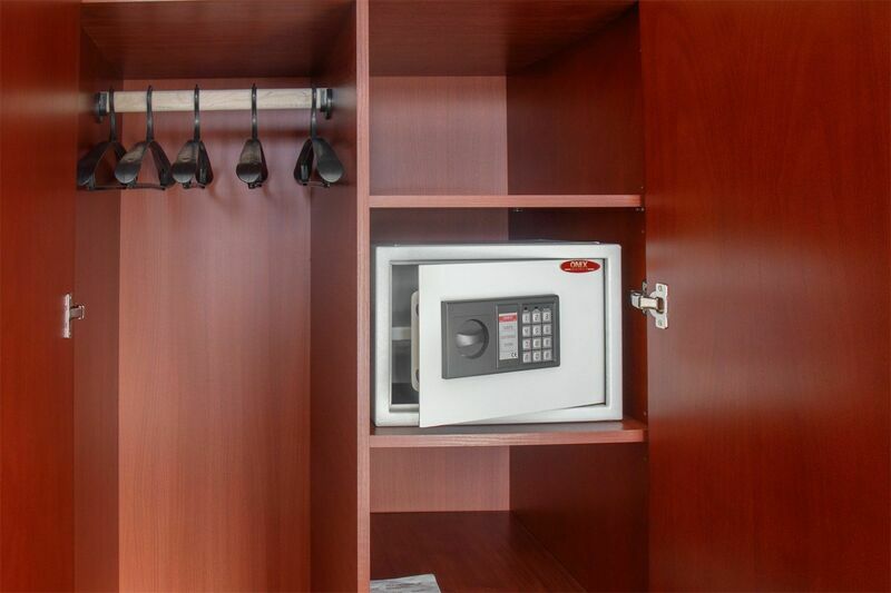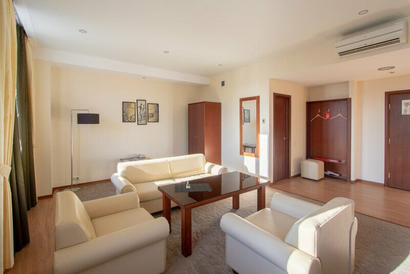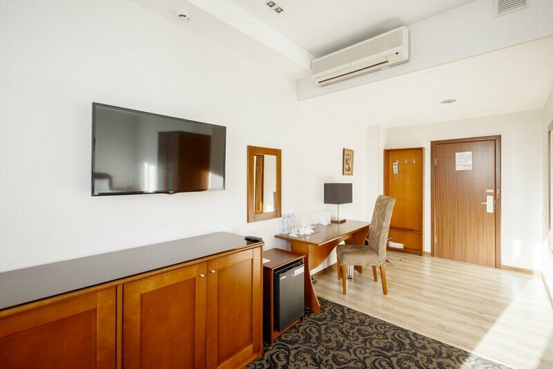 Во всех номерах отеля есть современная мебель, кондиционер, телевизор с плоским экраном и сейфом.
