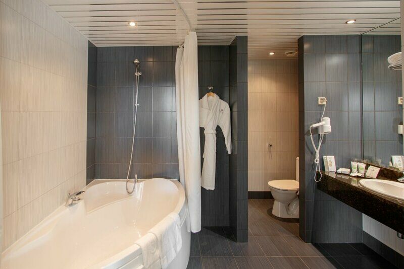 Путешествие с семьейПрекрасный отпуск в ВоронежеОтличный отель вдали от шумного центра, с видом на лес и парк. Вежливый персонал. Идеальная чистота и ежедневная влажная уборка в номере. Номера новые, большие, тёплые (даже без отопления), кровати удобные. Есть даже зеркало перед унитазом :) Правда, нет горячего полотенцесушителя. Шумоизоляция средняя, но на этот случай спасают беруши. Шторы на окнах плотные, есть москитные сетки. Вкусный и разнообразный завтрак с секретом: по желанию можно отдельно заказать яичницу-глазунью, но об этом вам никто не скажет, если сами не спросите :) Есть свой закрытый парк с лавочками и фонтанами, где можно отдохнуть в тишине и послушать пение птиц. В двух шагах от гостиницы есть "Пятёрочка". До центра легко добраться на такси. Обязательно вернёмся сюда снова.