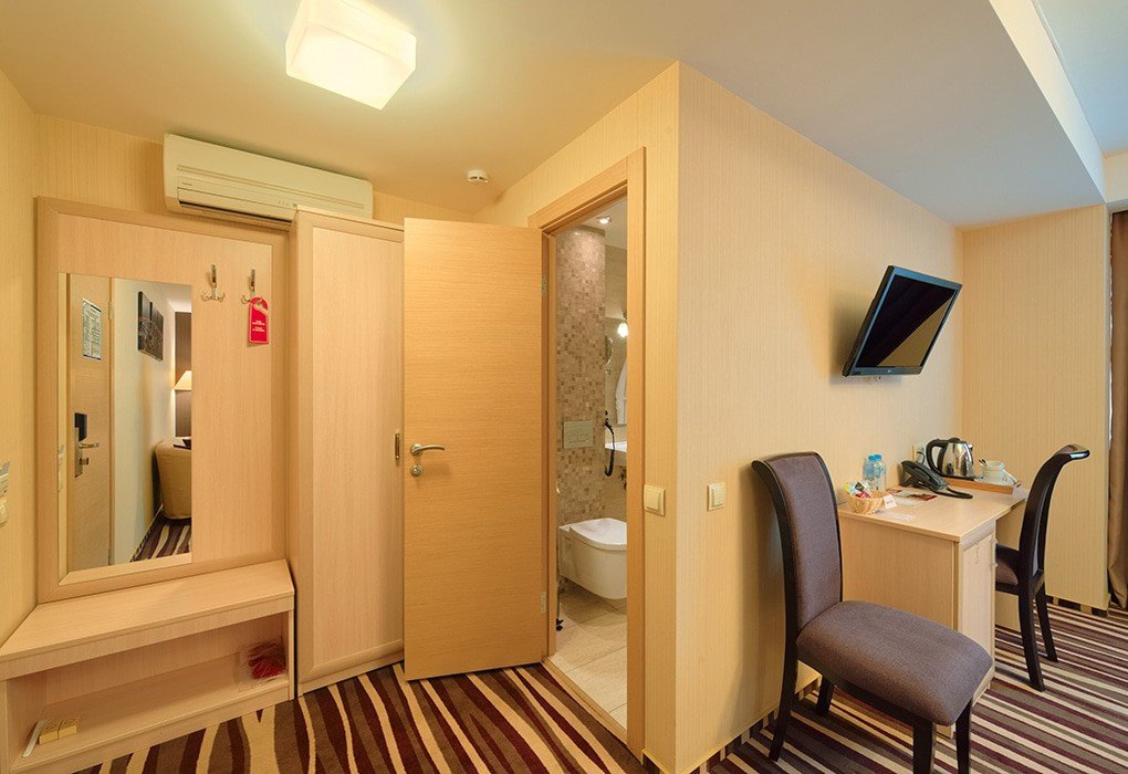 телевизор, Wi-Fi, интернет, IP-телефон, кондиционер, светильник, фен, электронные замки, душевая кабина, санузел, биде, халаты, банные полотенца, тапочки, гигиенические средства, косметические средства, две односпальные кровати, ортопедический матрас, диван, кресла, тумбы, стулья, шкаф для одежды, вешалки, журнальный столик, письменный стол, багажная тумба, зеркало, письменные принадлежности, свежая пресса, чайный набор, обслуживание номеров, информационная карта, меню, сейф, чайник, унитаз, раковина, мягкая мебель, косметическое зеркало, питьевая вода, ковровое покрытие, отопление, душ, вид на город, кулер на этаже, кресло, центральное кондиционирование, вид во двор, стаканы, туалетный столик, кофейный столик, стул, стол, туалетный столик, туалетные средства, туалет, сплит-система, цифровое тв, внутренний телефон, мини-холодильник, москитная сетка, номер для некурящих, рабочий стол, фитнес-зона, уборка номера, услуги прачечной (платно), вешалки-плечики, бутилированная вода, СПА, мыло, затемняющая штора, прачечная (за дополнительную плату), комната для переговоров (за дополнительную плату), не раскладной диван, можно с питомцамиВ номере
