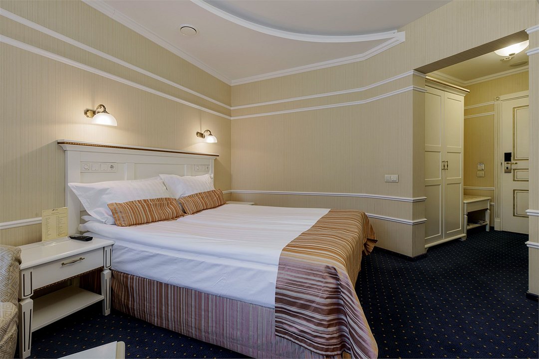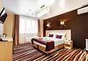 Номер средней площадью 21 кв.м. В номере есть балкон. Элегантный классический интерьер. В номере: кровать Queen size с ортопедическим матрацем, рабочий стол, сейф, телевизор с плоским экраном, шкаф для одежды, багажница. Номер оборудован индивидуальной сплит-системой и системой black-out. В ванной комнате: раковина и душевой поддон выполнены из искусственного камня, дизайнерская плитка с мозаикой, современная душевая система. Бутилированная вода – в подарок при заезде.Услуги и удобства
