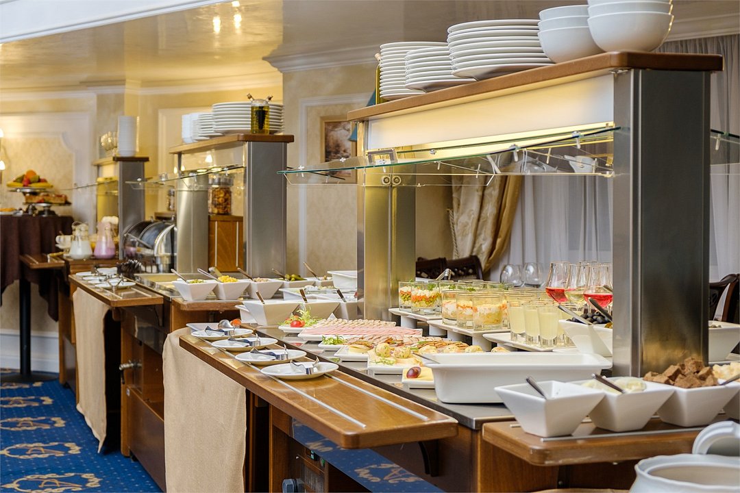- Завтрак "шведский стол" в ресторане в стиле петровских времен