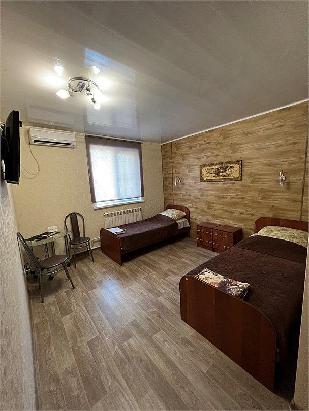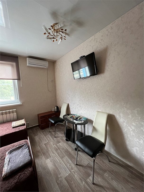 телевизор, спутниковое телевидение, кабельное телевидение, Wi-Fi, кондиционер, светильник, фен, вентилятор, утюг, радио, обогреватель, душевая кабина, тапочки, две односпальные кровати, стулья, шкаф для одежды, вешалки, журнальный столик, зеркало, раковина, кулер на этаже, три односпальные кровати, общая ванная комната, вид во двор, туалетные средства, туалет, цифровое тв, телевизор с плоским экраном, Android TVВ номере