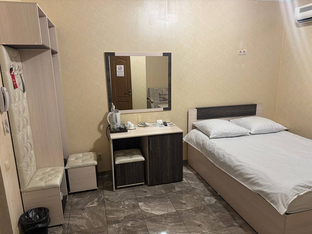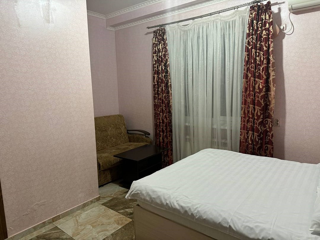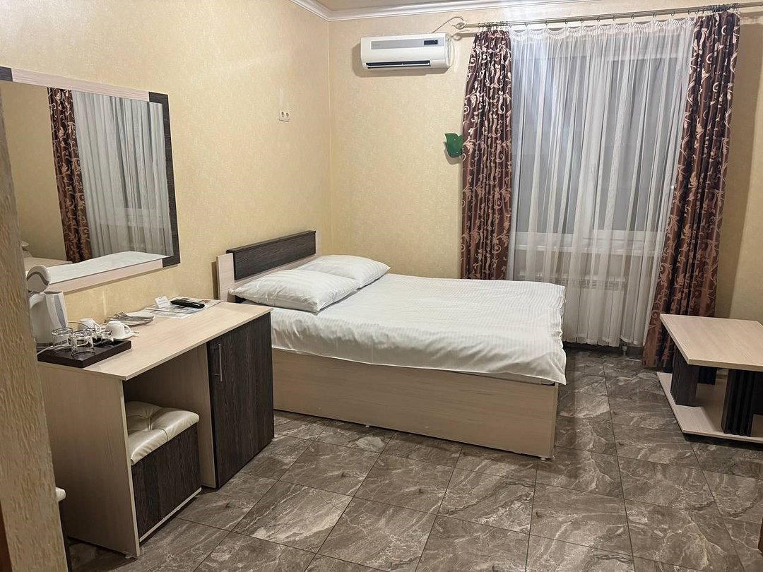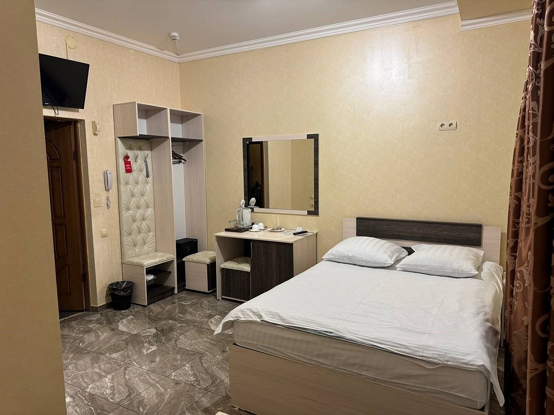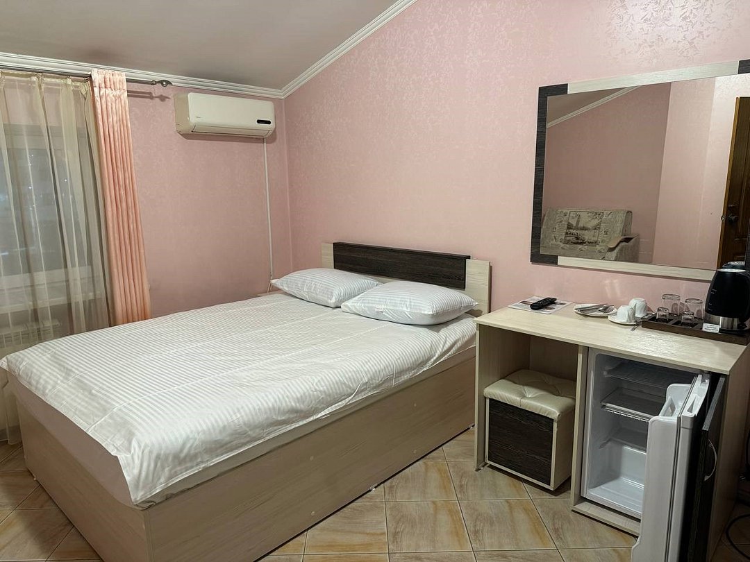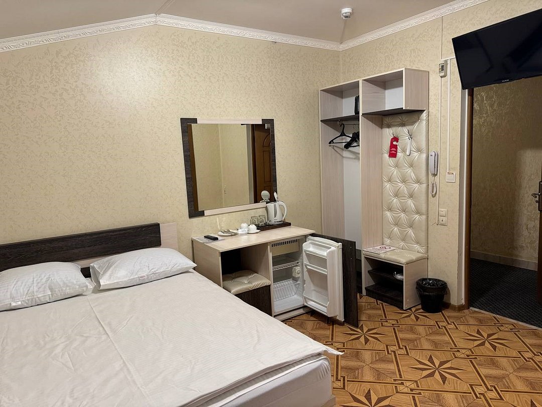 май 2023 г.Поездка на юг через ВоронежЗамечательный отель со всеми удобствами, есть своя парковка и мини-ресторан. Проживали всей семьёй, в номере большая кровать и удобный диванчик, чайник, холодильник все есть. Были проездом на юг. Рекомендую.