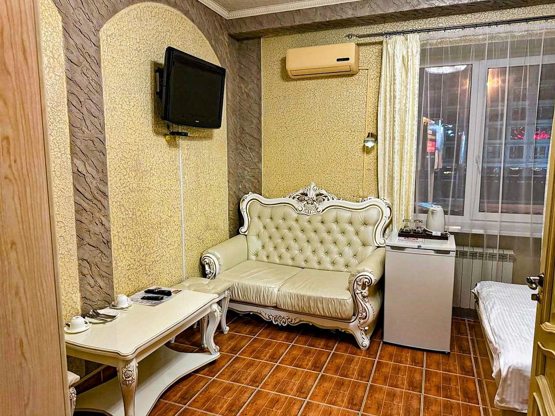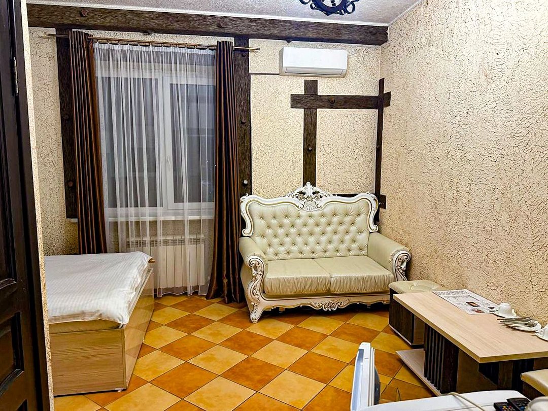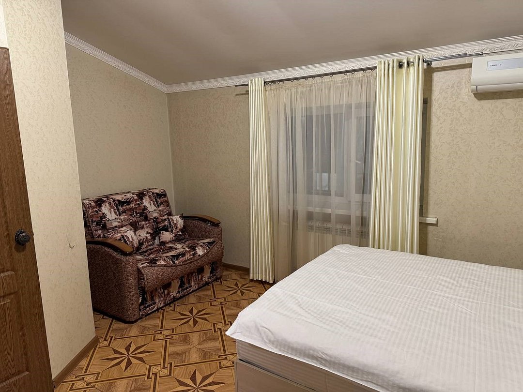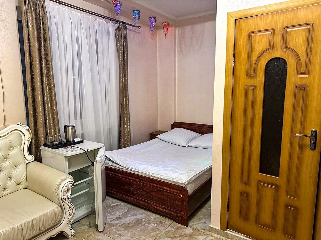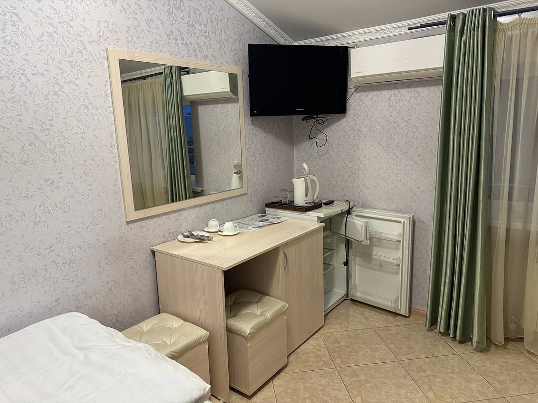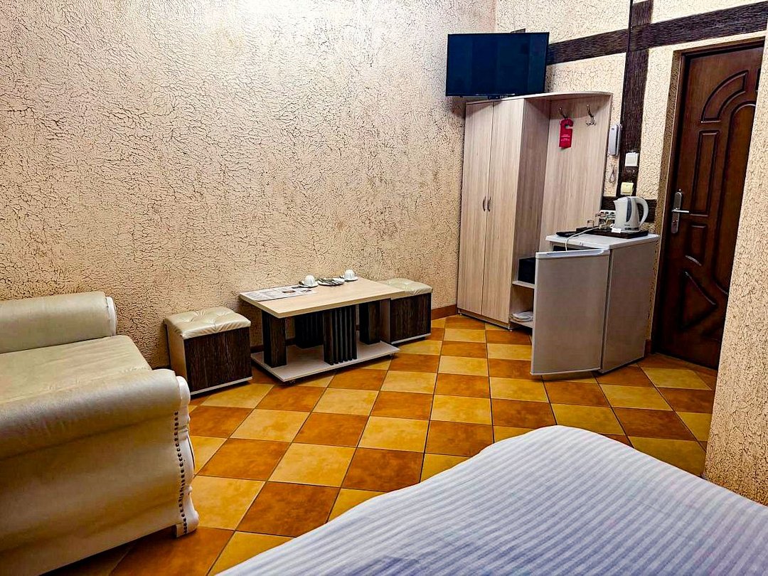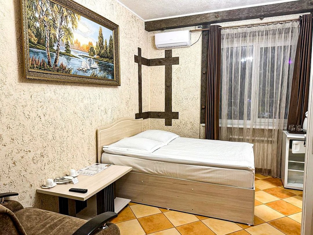 май 2023 г.Поездка на юг через ВоронежЗамечательный отель со всеми удобствами, есть своя парковка и мини-ресторан. Проживали всей семьёй, в номере большая кровать и удобный диванчик, чайник, холодильник все есть. Были проездом на юг. Рекомендую.
