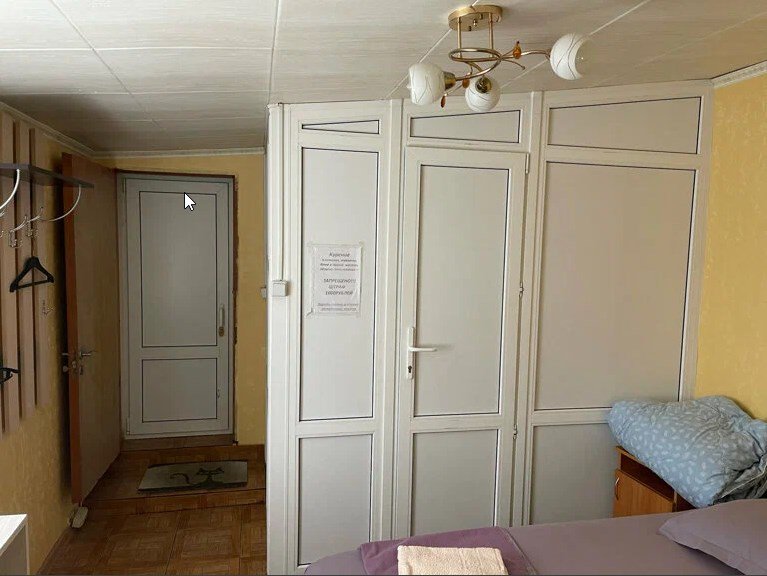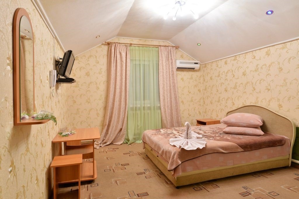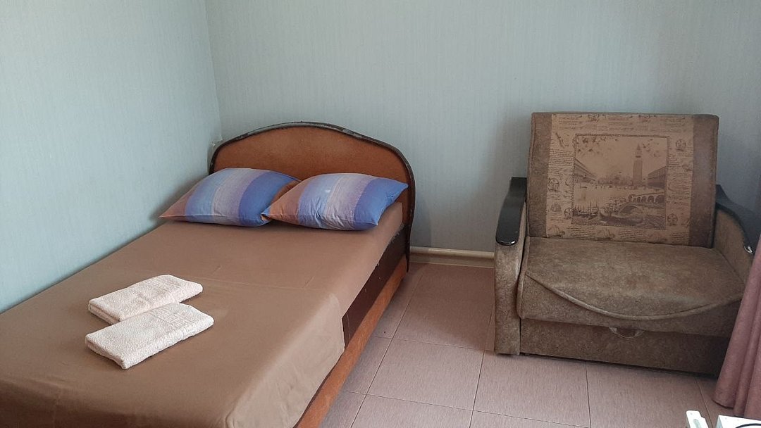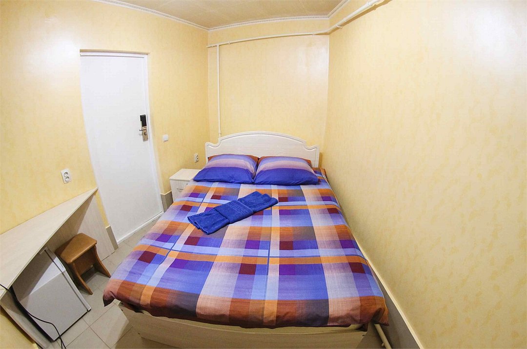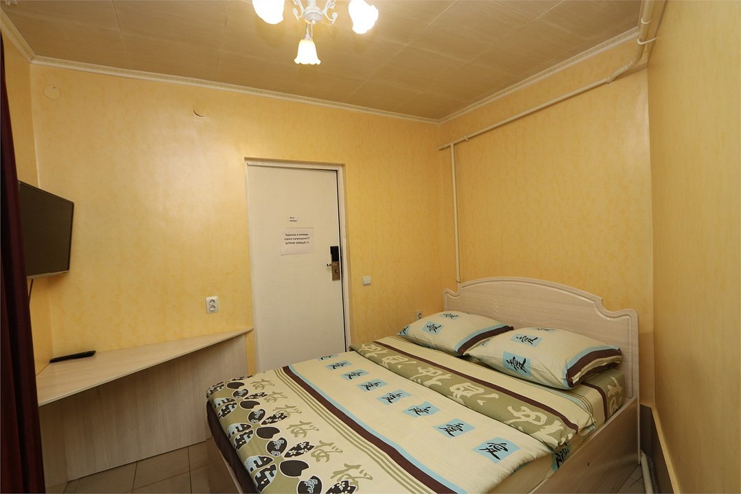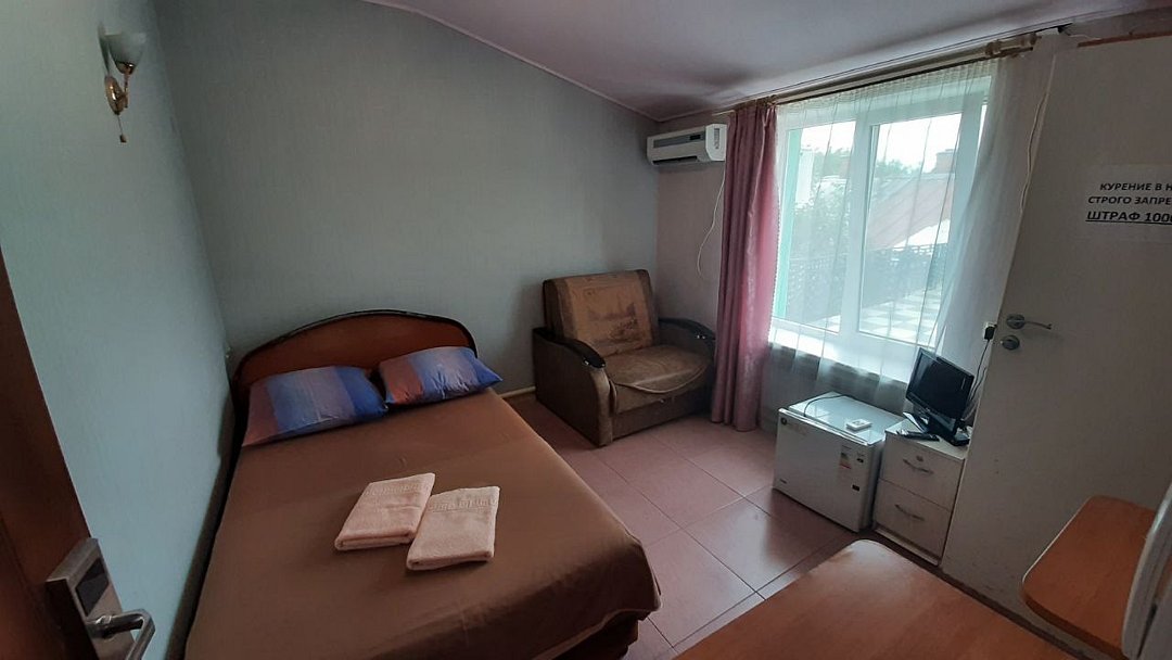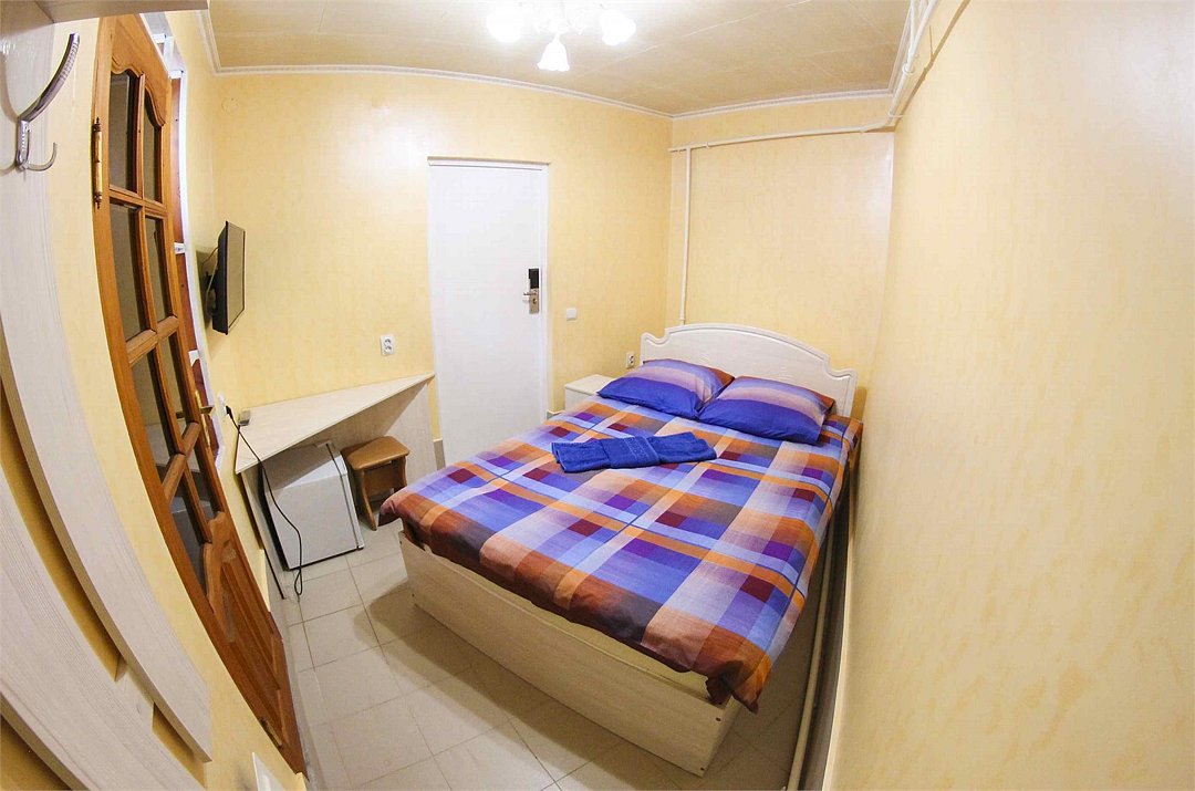 кабельное телевидение, Wi-Fi, вентилятор, двуспальная кровать, вешалки, общая ванная комната, вид во двор, стол, тумба, санузел на этажеВ номере
