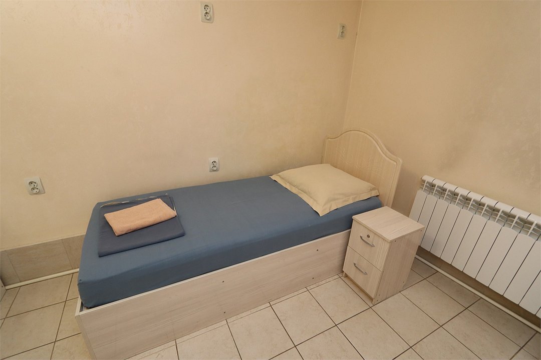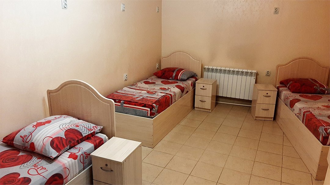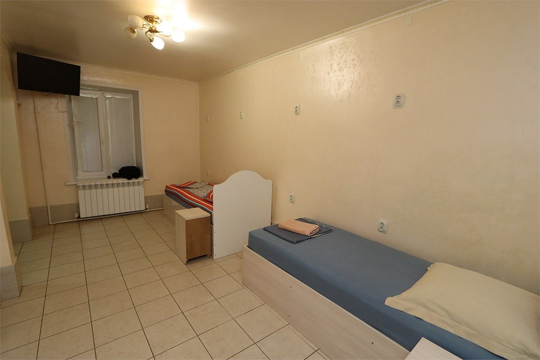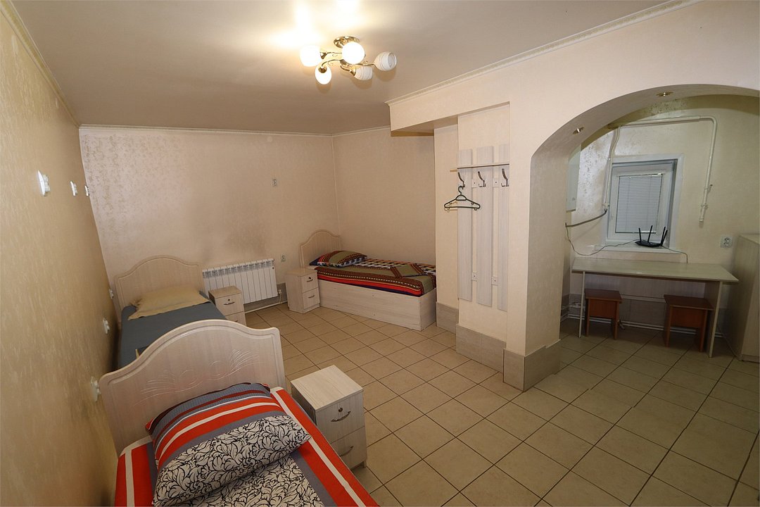 кабельное телевидение, Wi-Fi, стулья, шкаф для одежды, вешалки, обеденный стол, три односпальные кровати, общая ванная комната, вид во двор, тумба, санузел на этажеВ номере