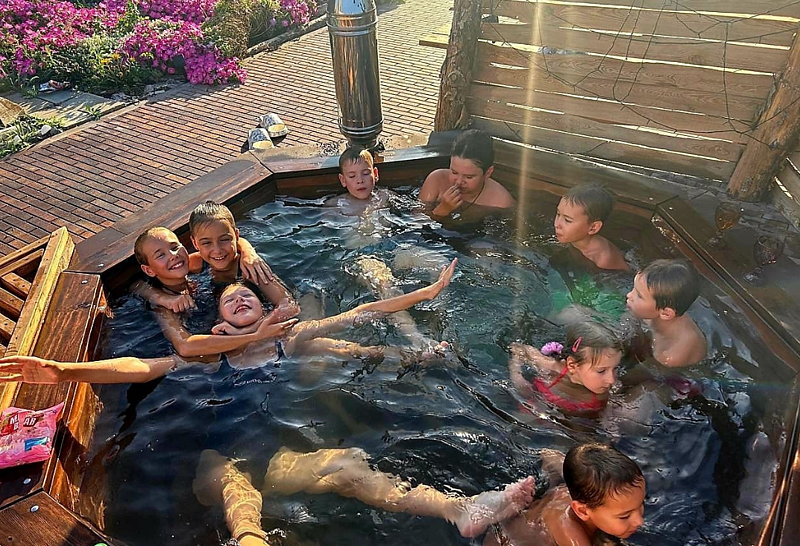 Чан с горячей водой, который находится прямо на улице. Особенно здорово погружаться в него после парной — горячая вода и свежий воздух создают потрясающий контраст. Это идеальное место, чтобы отдохнуть, расслабиться и почувствовать себя в полном комфорте.