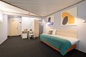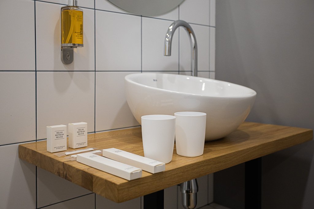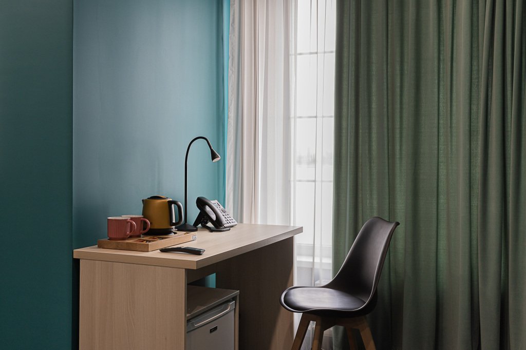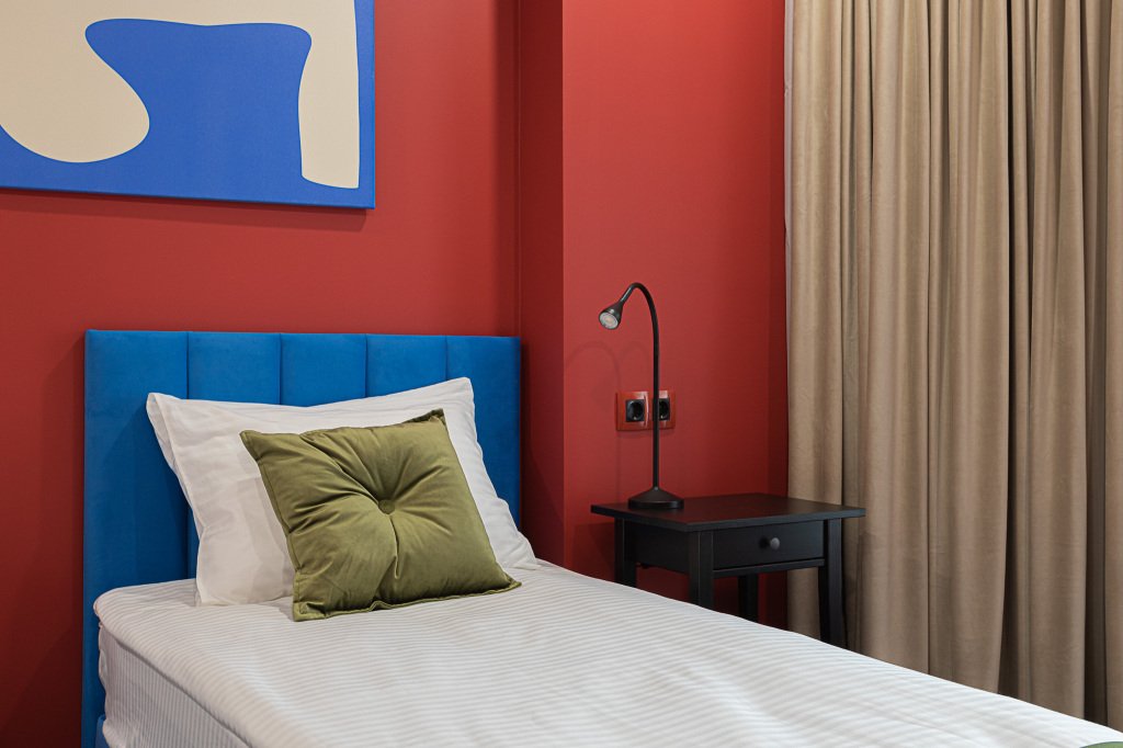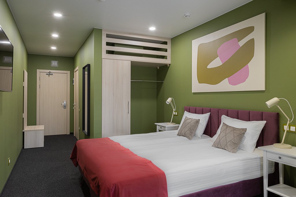 Дизайн номеров очень яркий, детям понравилось, но для расслабления, я бы использовал более спокойные тона. При этом, удобные кровати, достойное качество сна. В комнате имеется кондиционер, телевизор, холодильник, чайник, бесплатная вода. В ванной комнате косметический набор включает зубную щетку и пасту, что очень выручило.