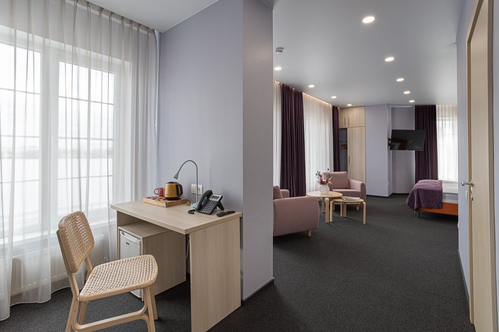 Чтобы вы могли отдохнуть после долгого дня, в номере есть телевизор и халат. Оснащение зависит от выбранной категории номера.