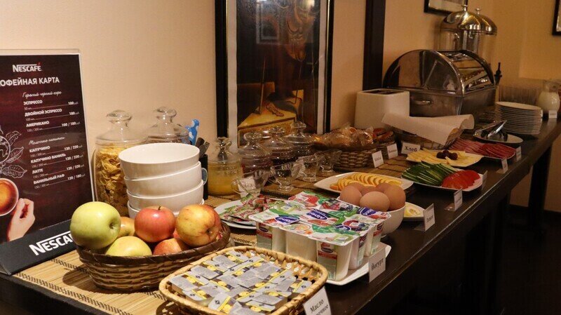 Отель «НеЧаев» предлагает комплексные завтраки на любой вкус и гастрономический приоритет: мясные, рыбные, овощные, сладкие. Из широкого ассортимента напитков Вы выберете тот, который приведет вас в тонус и подарит хорошее настроение.