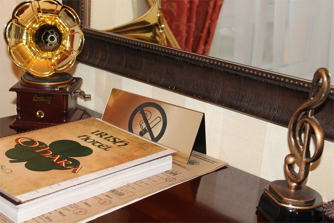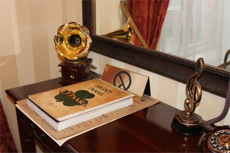 «Scarlett O’Hara» - номер назван в честь главной героини романа Маргарет Митчелл «Унесенные ветром». Она является олицетворением стойкости ирландского характера и идеалом красоты и ума ирландских женщин. Роман был написан в начале XX века. По книге был снят первый цветной полнометражный фильм. А актриса, Вивьен Ли, которая играла саму Скарлетт, получила Оскар. «Traditional Ireland» - номер назван в честь традиций и культуры Ирландии. Ирландия – это уют, семейные ценности. Традиции, которые берут свое начало в глубокой древности. Традиционная Ирландия - это потрясающая, здоровая и разнообразная кухня. А так же она ассоциируется с килтом, клюквой и волынкой. «Irish pubs» - Номер назван в честь традиционного паба. Ирландский паб – публичный дом для сбора населения и распития алкогольных напитков, с собственной пивоварней. Ирландский паб – это деревянный интерьер, отменное, свежее пиво и атмосфера настоящей Ирландии. «Nothern Ireland» - Номер назван в честь графства Объединенного Королевства Великобритании. Северная Ирландия – это часть Великобритании с конца 16 века. Столица – Белфаст. Хоть она и является захваченной частью Великобритании, все равно сохранила свои традиции, культуру и свободу духа. «Cranberries» - Номер назван в честь знаменитой ирландской рок-группы, переводится как клюква. Солистка Долорес О’Риордан знаменита своим потрясающим и запоминающимся вокалом. Эта группа прославилась в 90е годы. И их путь начался с хита «Zombie», который принес им огромное количество наград.Услуги и удобства