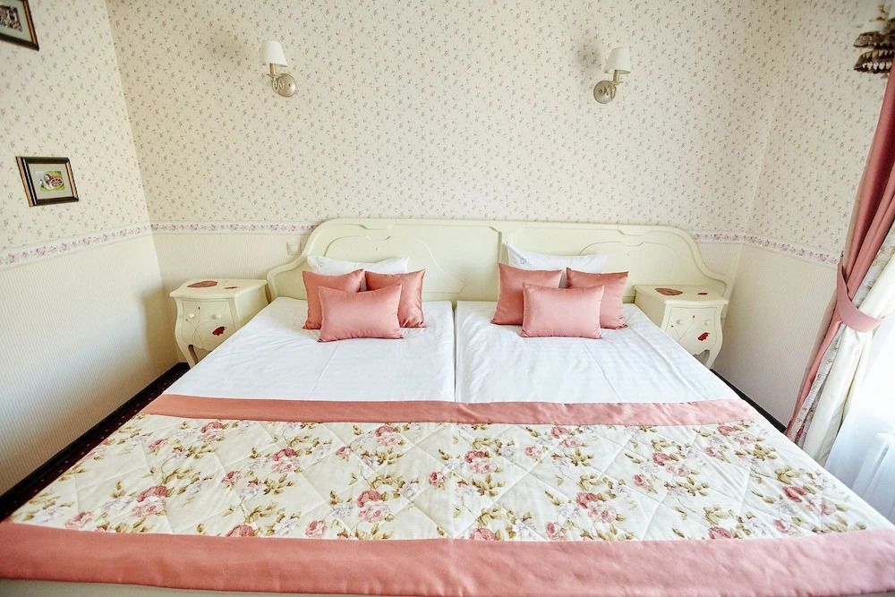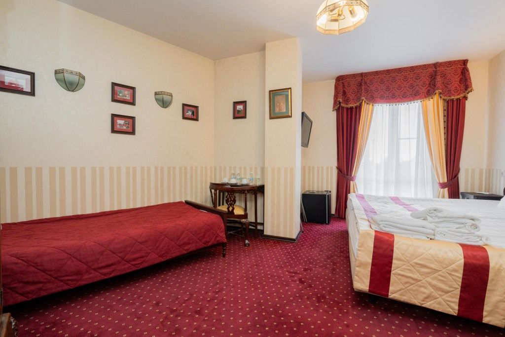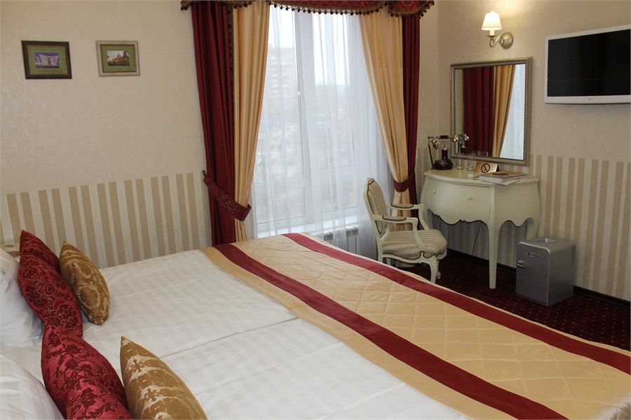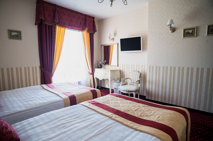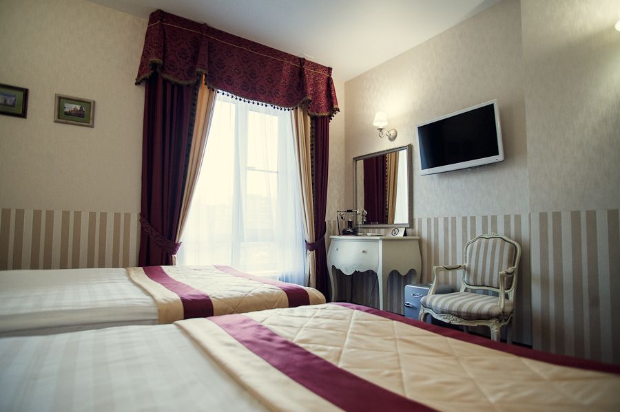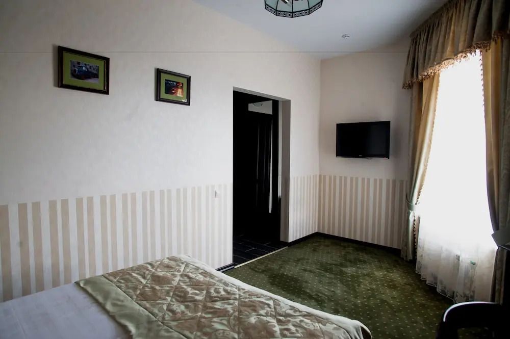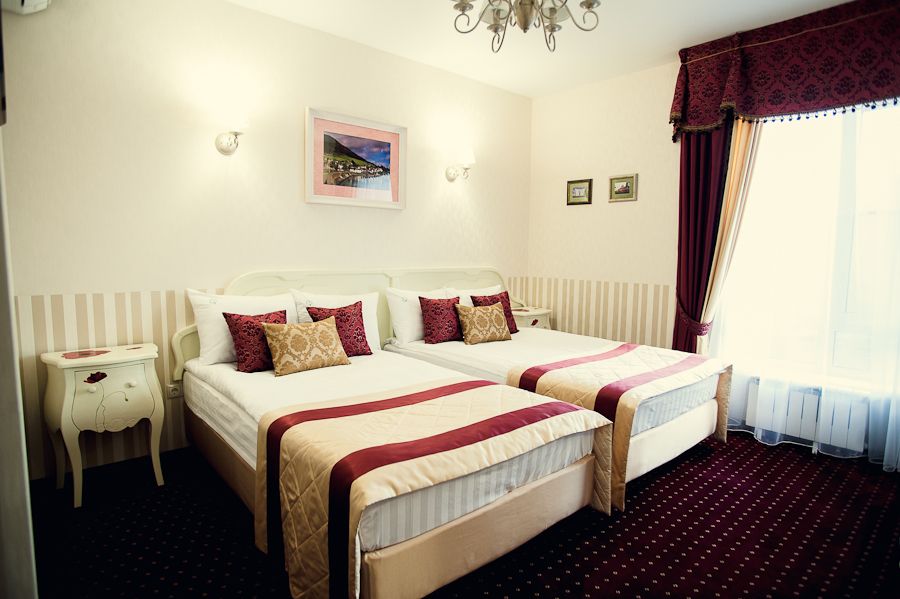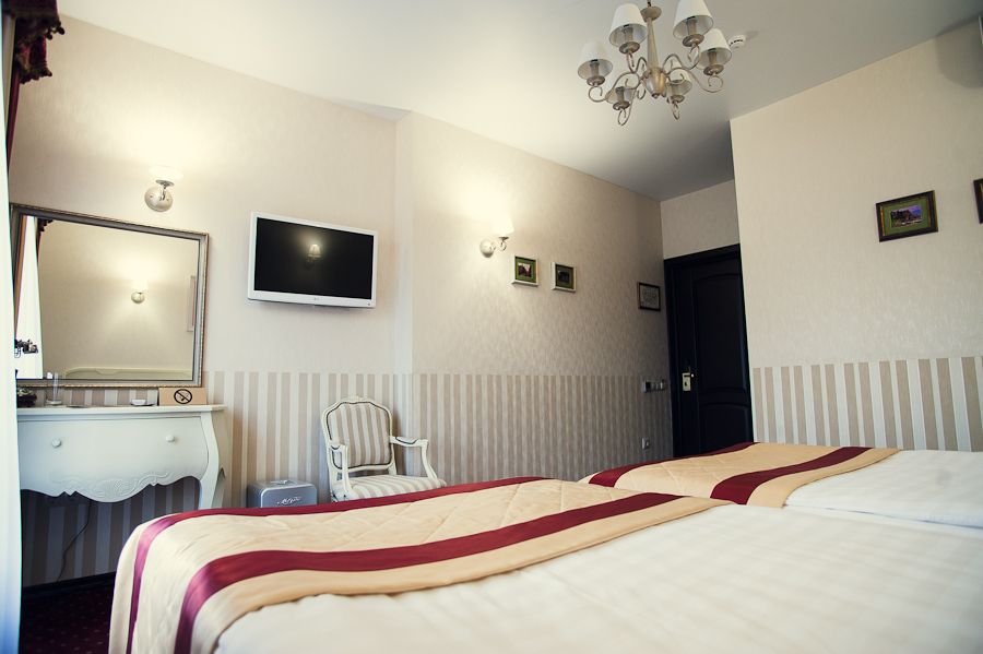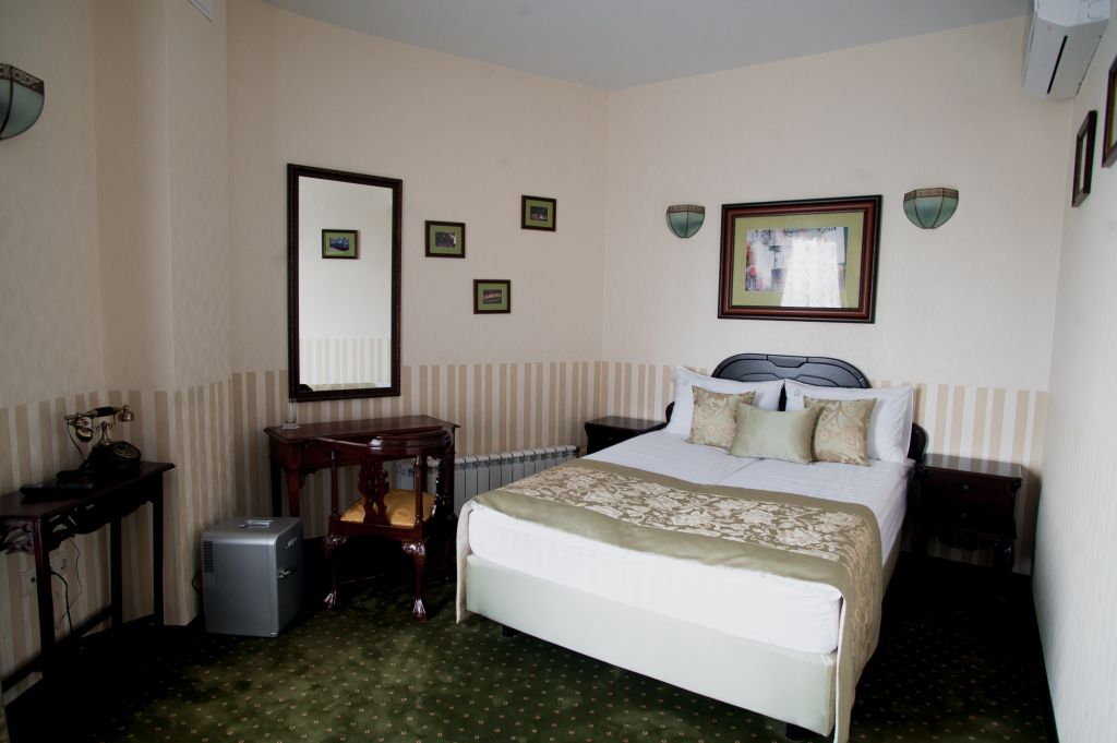 телевизор, Wi-Fi, телефон, холодильник, кондиционер, светильник, фен, электронные замки, душевая кабина, санузел, водонагреватель, банные принадлежности, халаты, банные полотенца, тапочки, гигиенические средства, две односпальные или большая двуспальная кровать, ортопедический матрас, тумбы, стулья, шкаф для одежды, вешалки, журнальный столик, зеркало, эксклюзивная мебель, мини-бар, информационная карта, меню, минеральная вода, можно с питомцамиВ гостиничном номере