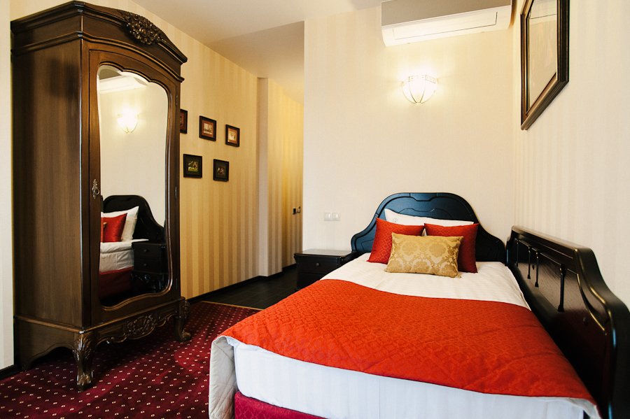 телевизор, Wi-Fi, телефон, холодильник, кондиционер, светильник, фен, электронные замки, ванна, санузел, водонагреватель, банные принадлежности, халаты, банные полотенца, тапочки, гигиенические средства, полутораспальная кровать, ортопедический матрас, тумбы, стулья, шкаф для одежды, вешалки, журнальный столик, письменный стол, зеркало, эксклюзивная мебель, свежая пресса, чайный набор, информационная карта, меню, сейф, минеральная вода, чайник, косметическое зеркало, питьевая вода, ковровое покрытие, меню подушек, набор для приготовления чая и кофе, услуги прачечной (платно), бутилированная вода, прачечная (за дополнительную плату), можно с питомцамиВ номере