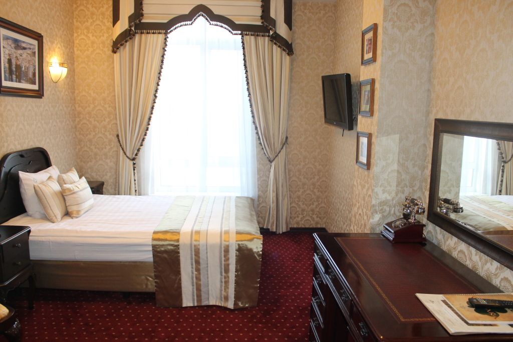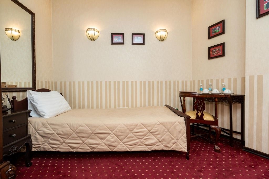 Одноместный стандартный номер создан для Вашего комфортного отдыха. В номере есть всё необходимое: Удобная односпальная кровать (1 м) ЖК-телевизор Мини - холодильник Система кондиционирования воздуха Просторная душевая кабина/ванна Полный комплект банных принадлежностей, включая белоснежный махровый халат, полотенца, тапочки, фен и косметические средства.Услуги и удобства