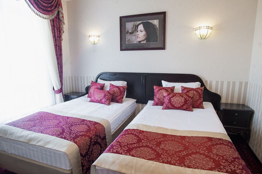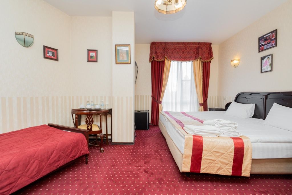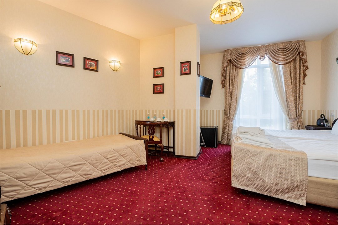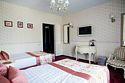 «Cranberries» - номер назван в честь знаменитой ирландской рок-группы, переводится как клюква. Солистка Долорес О’Риордан знаменита своим потрясающим и запоминающимся вокалом. Эта группа прославилась в 90е годы. И их путь начался с хита «Zombie», который принес им огромное количество наград. «Roy Kean» - Один из самых известных футболистов Ирландии 2000х годов. Является лучшим полузащитников клуба Манчестер Юнайтед, а так же является обладателем огромного количества наград и победителем Лиги чемпионов УЕФА. На данный момент – тренер сборной Ирландии. «George Best» - Номер назван в честь знаменитого ирландского футболиста 80х годов. Прославился своим дриблингом, агрессивной игрой и бурной личной жизнью. Так же он является победителем кубка УЕФА. Трехместный номер класса De Luxe вместимостью до 3 человек. В номере одна большая двуспальная кровать (две сдвинутых односпальные кровати) и одна отдельно стоящая односпальная кровать. Возможно размещение на трех равноценных односпальных кроватях.Услуги и удобства