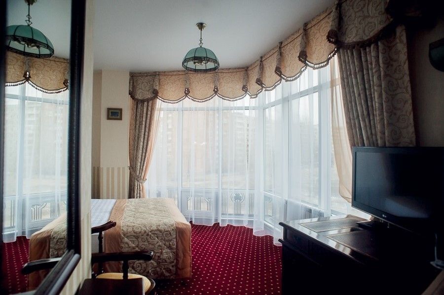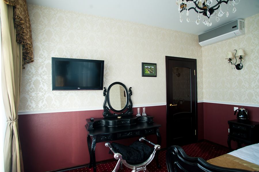 телевизор, Wi-Fi, телефон, холодильник, кондиционер, светильник, фен, электронные замки, душевая кабина, санузел, водонагреватель, банные принадлежности, халаты, банные полотенца, тапочки, гигиенические средства, полутораспальная кровать, ортопедический матрас, тумбы, стулья, шкаф для одежды, вешалки, журнальный столик, письменный стол, зеркало, эксклюзивная мебель, мини-бар, информационная карта, меню, минеральная вода, можно с питомцамиВ гостиничном номере