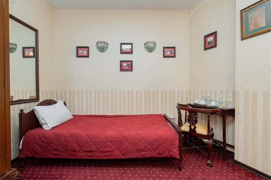 Одноместный стандартный номер создан для Вашего комфортного отдыха. В номере есть всё необходимое: Удобная односпальная кровать (1 м) ЖК-телевизор МИни - холодильник Система кондиционирования воздуха Просторная душевая кабина/ванна Полный комплект банных принадлежностей, включая белоснежный махровый халат, полотенца, тапочки, фен и косметические средства.Услуги и удобства