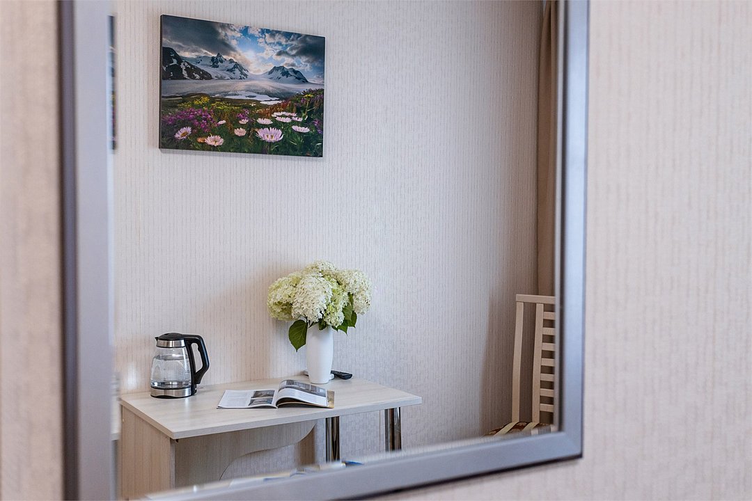 Гостиница занимает двухэтажное здание. Жилой фонд включает различные категории номеров, от стандартных двухместных до улучшенных пятиместных. Все комнаты оформлены по-домашнему уютно, располагают полным комплектом мебели и техники, собственной ванной. Везде гостям доступно подключение к Wi-Fi.