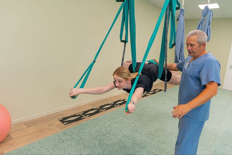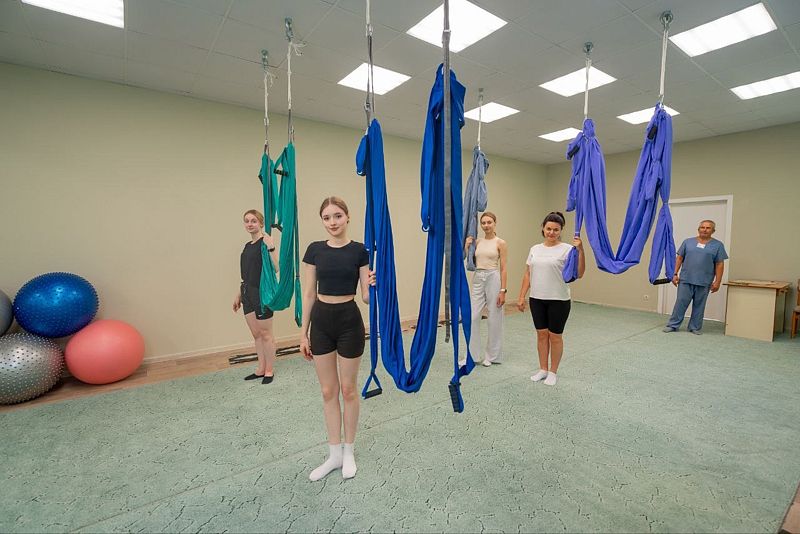 Адаптивная гимнастика в гамаках — это метод физической активности, который сочетает элементы гимнастики с использованием гамака (или полотна), подвешенного на каркас или потолок.