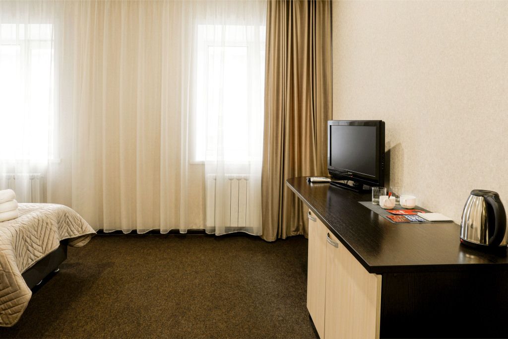 В номере гостей будут ждать телевизор, фен для волос и бесплатный чай. Оснащение зависит от выбранной категории номера.