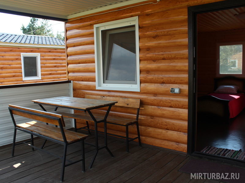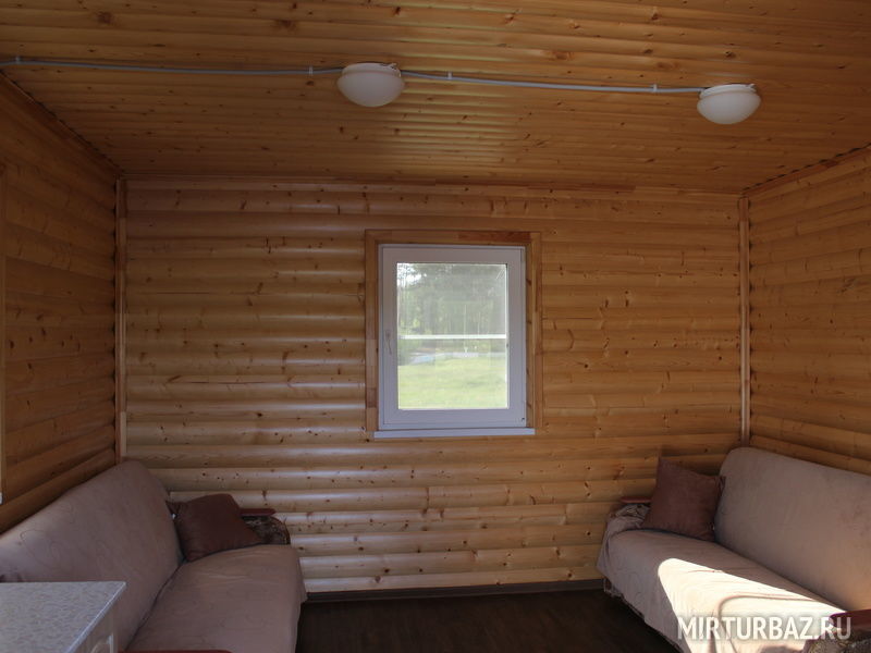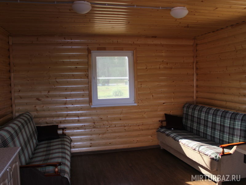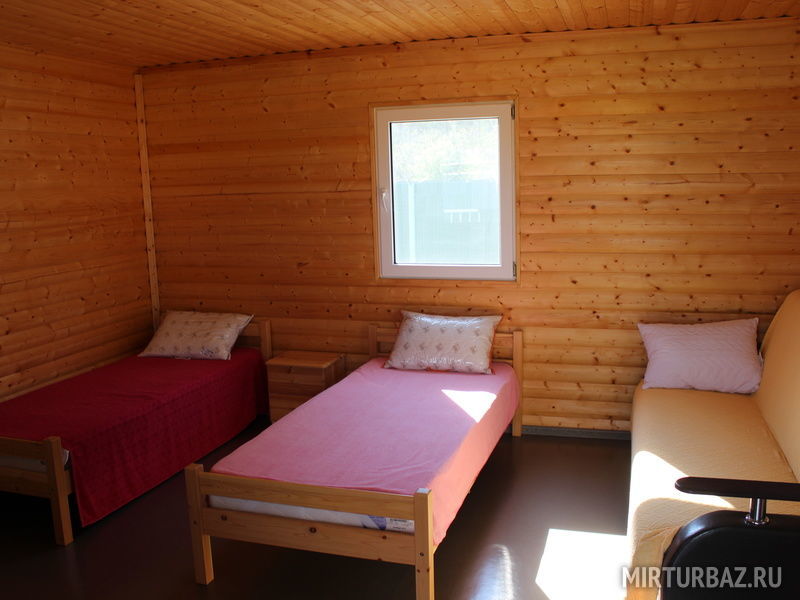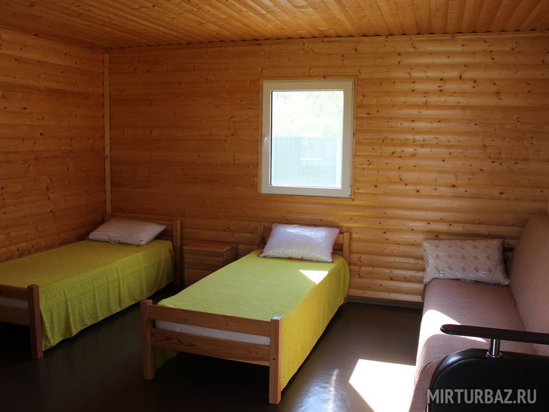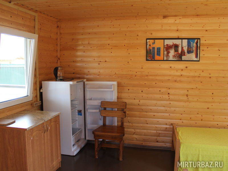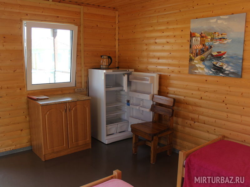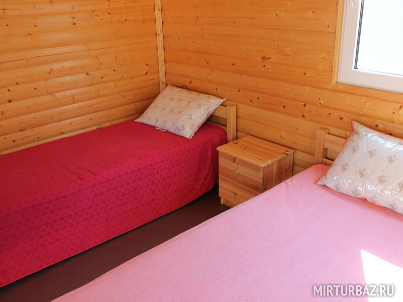 С частичными удобствами (душ, санузел в 10-20 шагах от домиков). В домике: 2 кровати, диван, шкаф, холодильник, чайник.