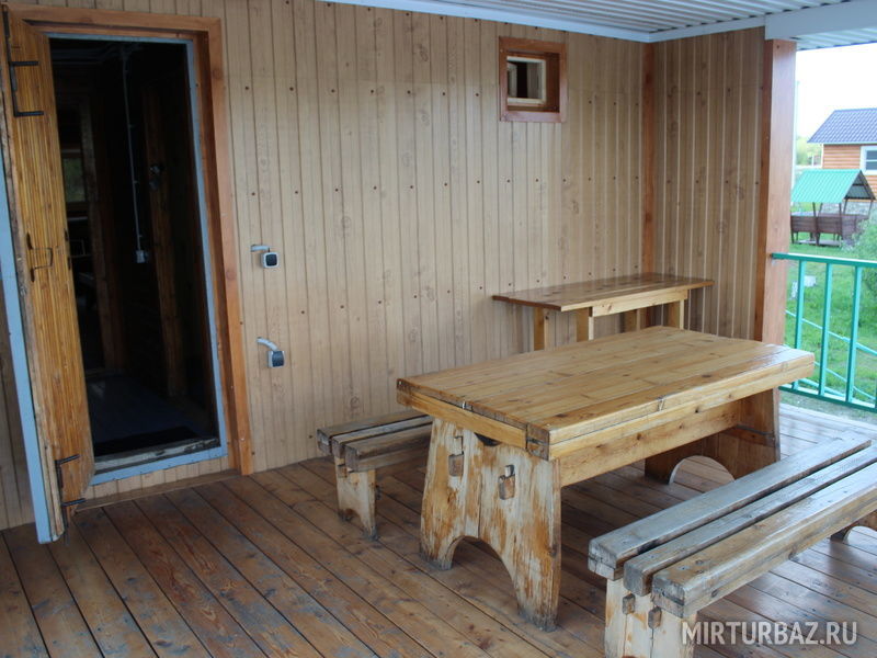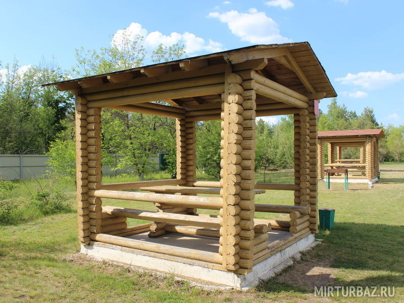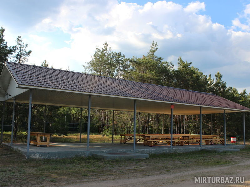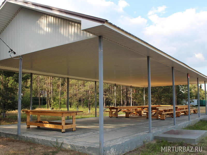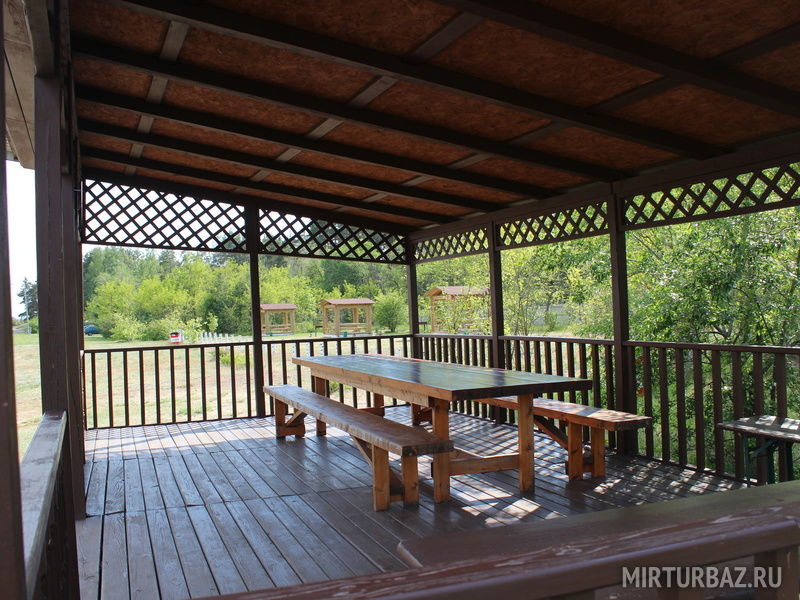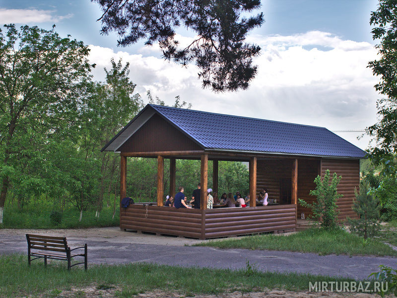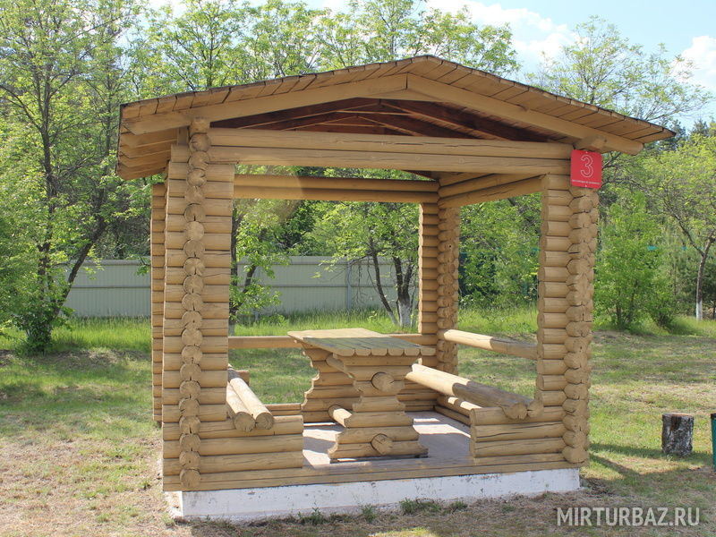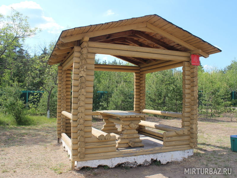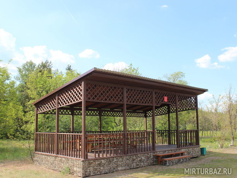 Размер беседки 3 м х 8 м. Около беседки находится мангал. При аренде беседок возможно пользоваться спортивными площадками, пляжем и спортинвентарем.