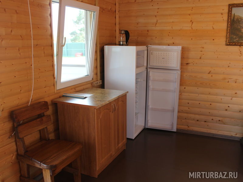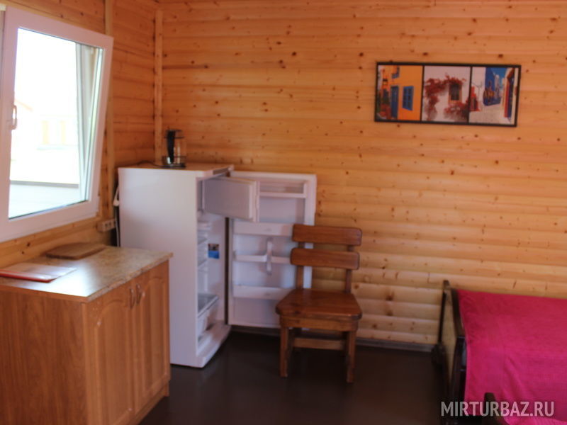 Без удобств (душ и санузел на улице рядом с домиком). В домике: 2 дивана, холодильник, чайник. Рядом с домиком беседка и мангал.