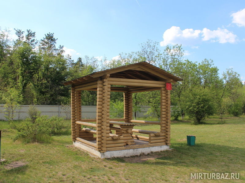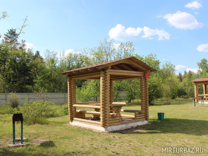Размер беседки 2.5 м х 2.5 м. Около беседки находится мангал. При аренде беседок возможно пользоваться спортивными площадками, пляжем и спортинвентарем.
