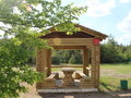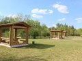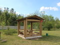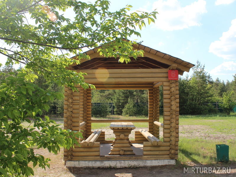 Размер беседки 2.5 м х 3 м. Около беседки находится мангал. При аренде беседок возможно пользоваться спортивными площадками, пляжем и спортинвентарем.