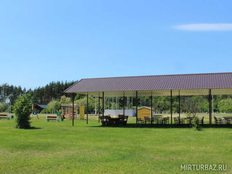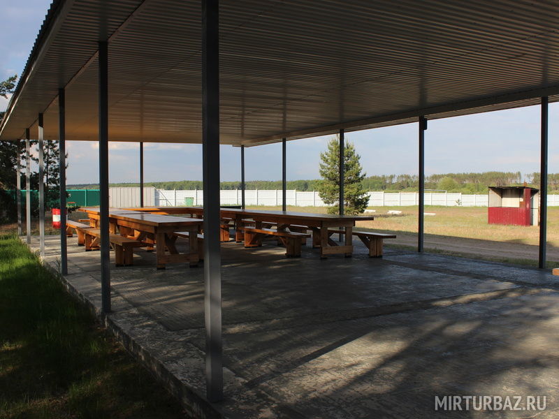 Размер беседки 3 х 8 м. Около беседки находится мангал. При аренде беседок возможно пользоваться спортивными площадками, пляжем и спортинвентарем.