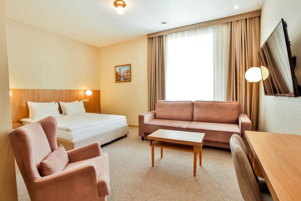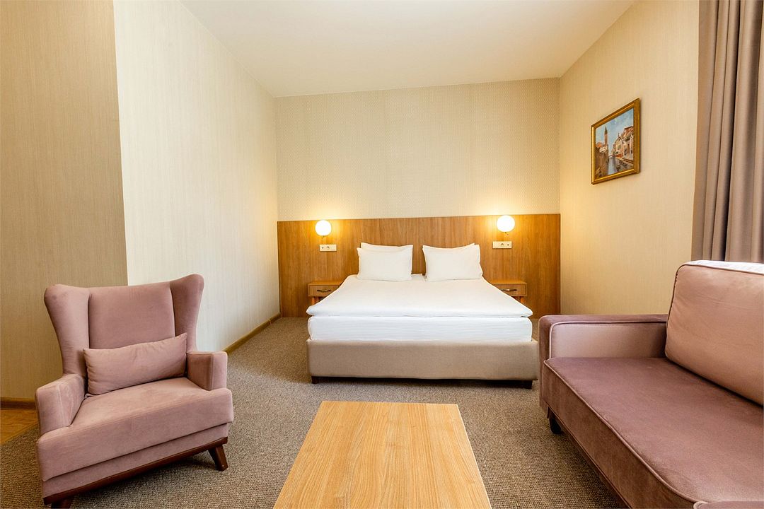Деловые активные люди, приехавшие в Воронеж с бизнес-визитом, будут чувствовать себя максимально комфортно в номерах этого класса. Номера оснащены кондиционерами, телевизорами и современными средствами коммуникации. Доступ к высокоскоростному интернету и телефон сделают Ваше общение комфортным. Дизайн номеров выполнен в спокойных пастельных тонах, оказывающих успокаивающее воздействие. Внутри помещений создаётся комфортный микроклимат.Услуги и удобства