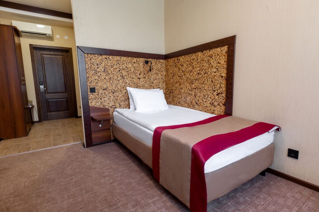 кабельное телевидение, Wi-Fi, интернет, телефон, кондиционер, система климат-контроля, светильник, настольные лампы, фен, система безопасности, электронные замки, ванная комната, душевая кабина, ванна или душевая кабина, санузел, водонагреватель, банные принадлежности, халаты, банные полотенца, тапочки, гигиенические средства, косметические средства, односпальная кровать, ортопедический матрас, тумбы, стулья, шкаф для одежды, вешалки, письменный стол, багажная тумба, зеркало, ковер, письменные принадлежности, свежая пресса, чайный набор, обслуживание номеров, сейф, унитаз, вид на город, кулер на этаже, высокие потолки, стаканы, стул, туалетный столик, туалетные средства, внутренний телефон, телевизор с плоским экраном, мини-холодильник, москитная сетка, можно с питомцамиВ гостиничном номере