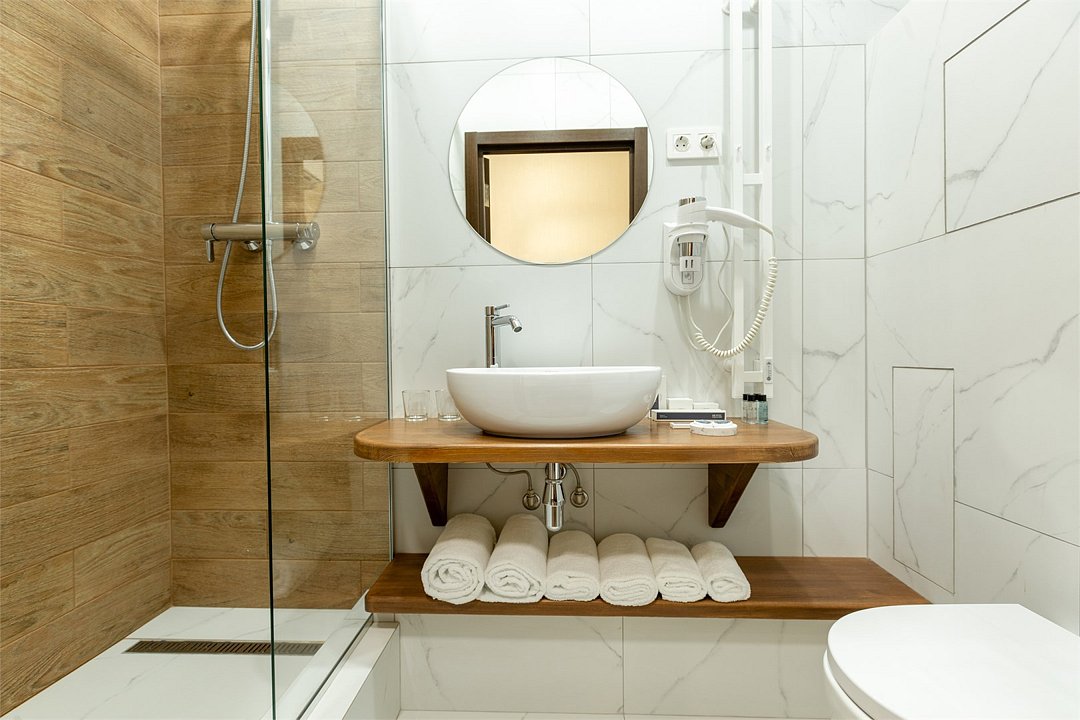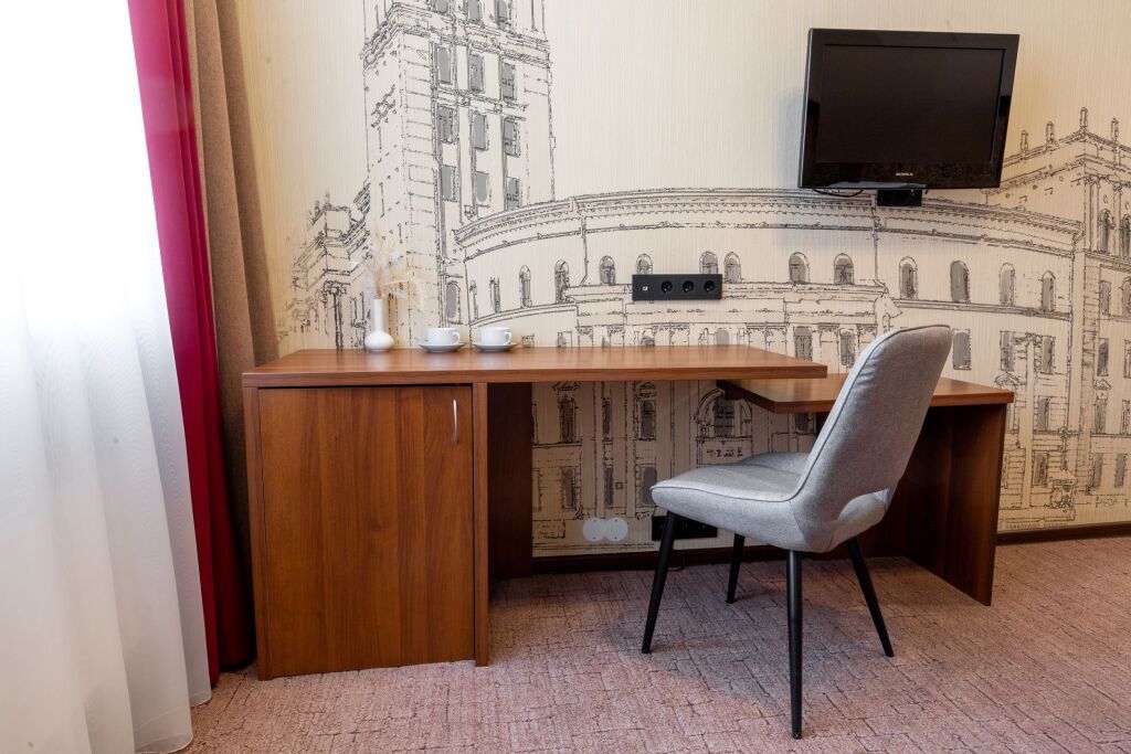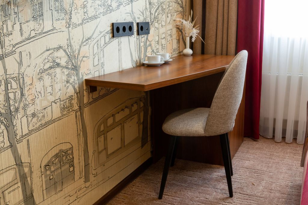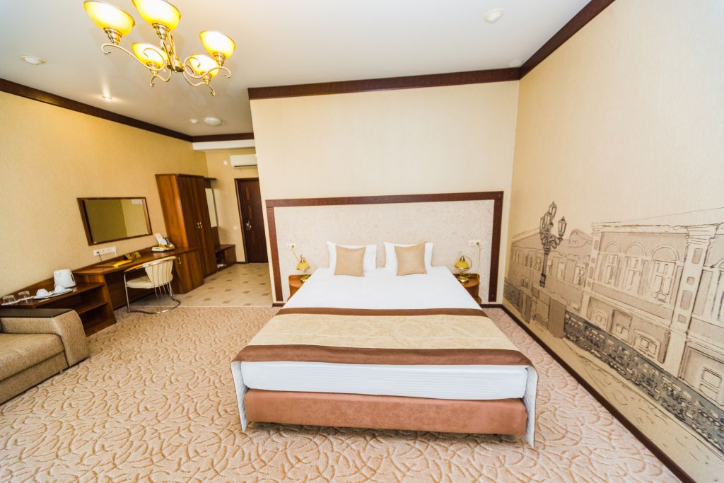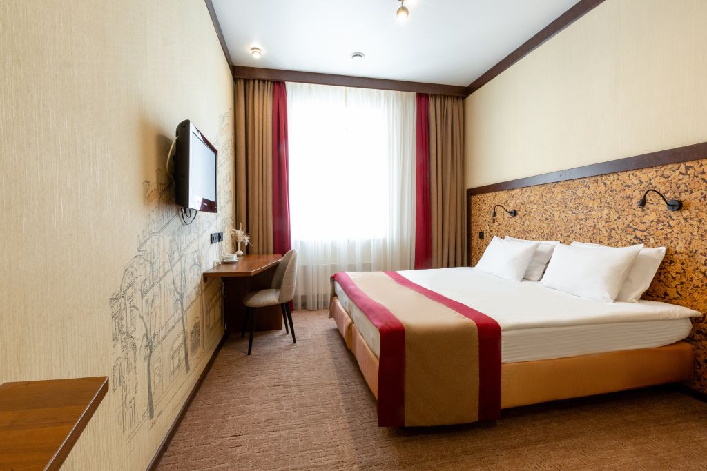 кабельное телевидение, Wi-Fi, интернет, телефон, кондиционер, система климат-контроля, светильник, настольные лампы, фен, система безопасности, электронные замки, утюг, ванная комната, душевая кабина, санузел, водонагреватель, банные принадлежности, халаты, банные полотенца, тапочки, гигиенические средства, косметические средства, две односпальные или большая двуспальная кровать, ортопедический матрас, тумбы, стулья, шкаф для одежды, вешалки, письменный стол, багажная тумба, зеркало, ковер, мини-бар, письменные принадлежности, свежая пресса, чайный набор, обслуживание номеров, информационная карта, меню, сейф, минеральная вода, чайник, унитаз, раковина, косметическое зеркало, питьевая вода, ковровое покрытие, вид на город, вид во двор, высокие потолки, стаканы, стул, туалетный столик, сплит-система, цифровое тв, внутренний телефон, телевизор с плоским экраном, мини-холодильник, москитная сетка, гостиничная парфюмерия, можно с питомцамиВ гостиничном номере