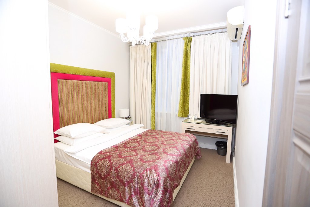 12 номеров Standart расположены на втором и третьем этажах с видом на приотельную площадь или Старый парк. В номерах площадью 14 м² будет комфортно как гостям, находящимся в деловой поездке, так и молодой паре. В номерах предусмотрена двуспальная кровать*, а также рабочий стол, шкаф, телевизор и кондиционер