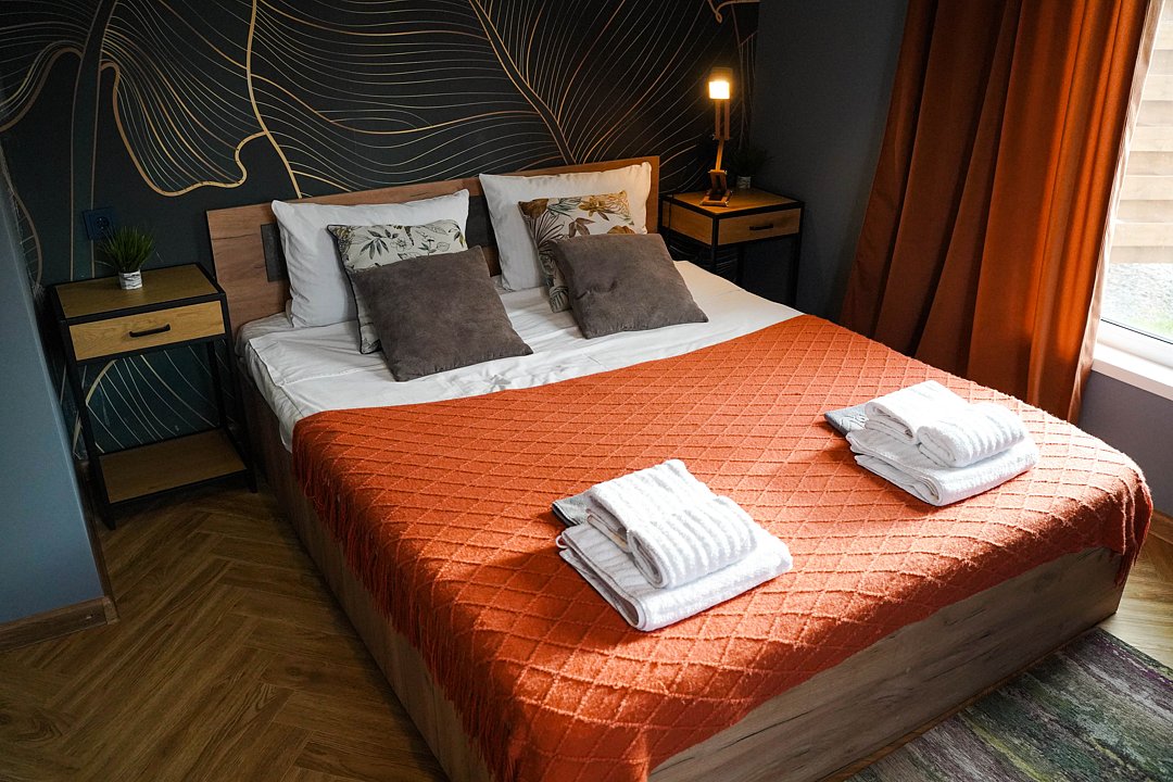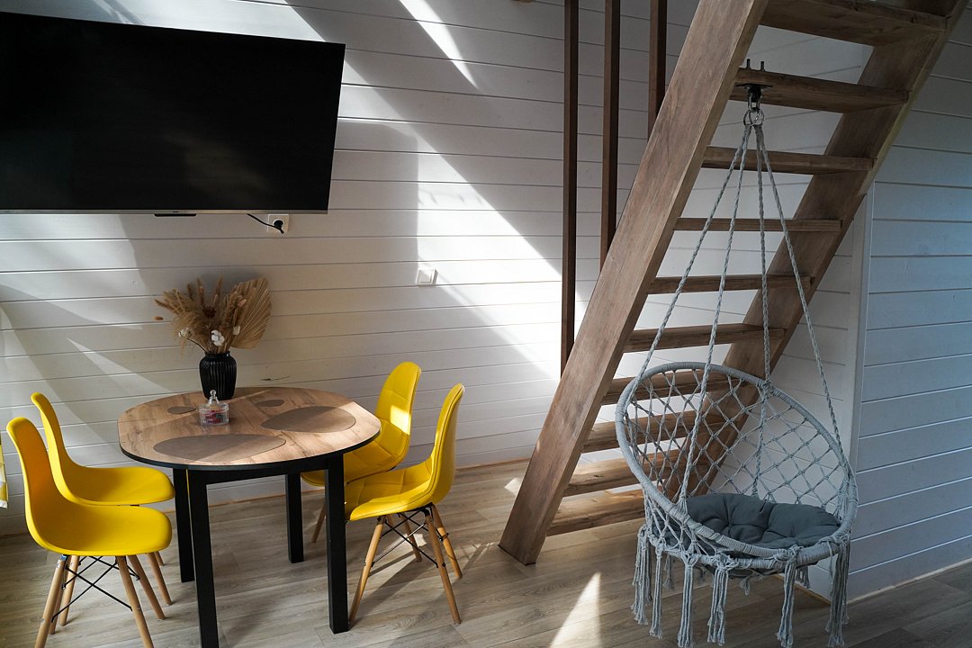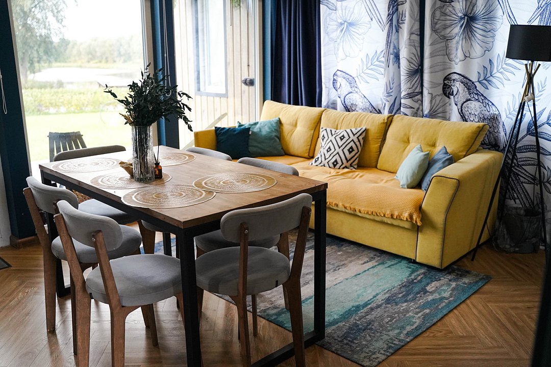 Каждый дом рассчитан на размещение от двух до шести гостей и предлагает гармоничное сочетание современного комфорта и природного очарования. В вашем распоряжении уютная спальня, комфортабельная гостиная, полностью оборудованная кухня и просторная терраса с видом на озеро, где так приятно пить утренний кофе или проводить тёплые вечера в приятной компании.
