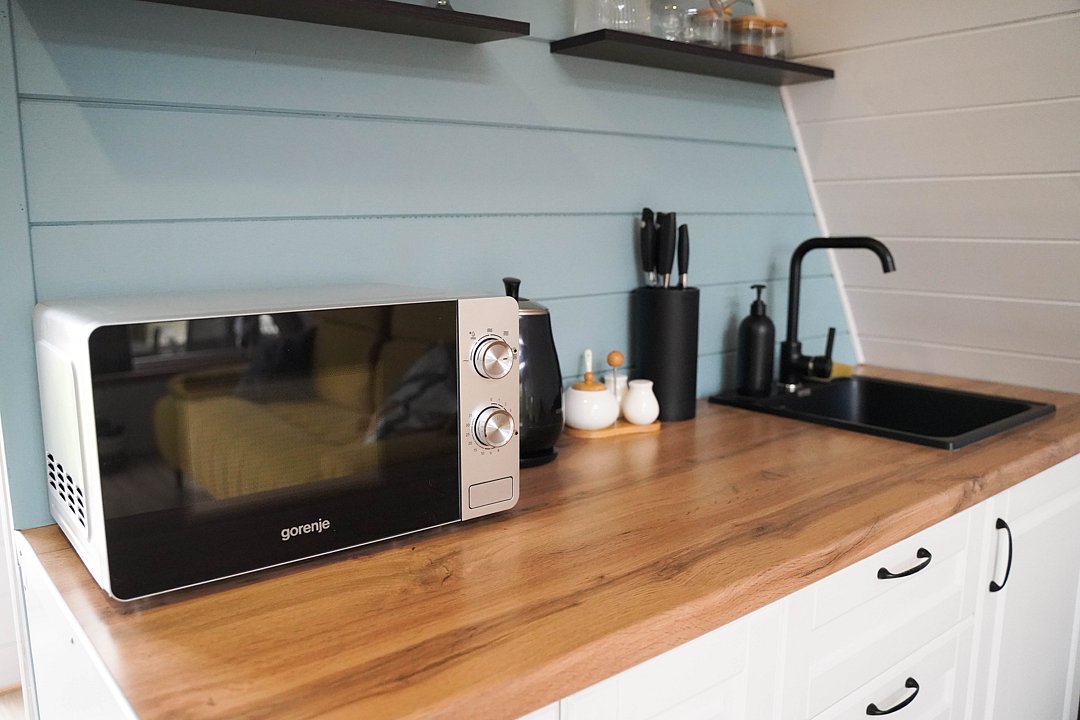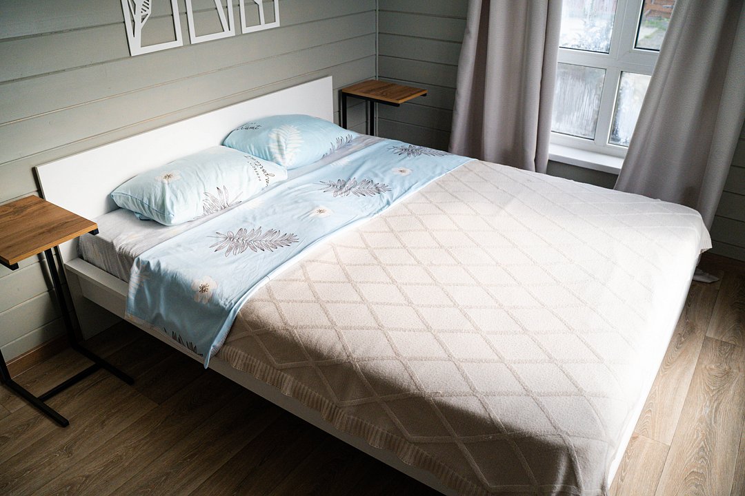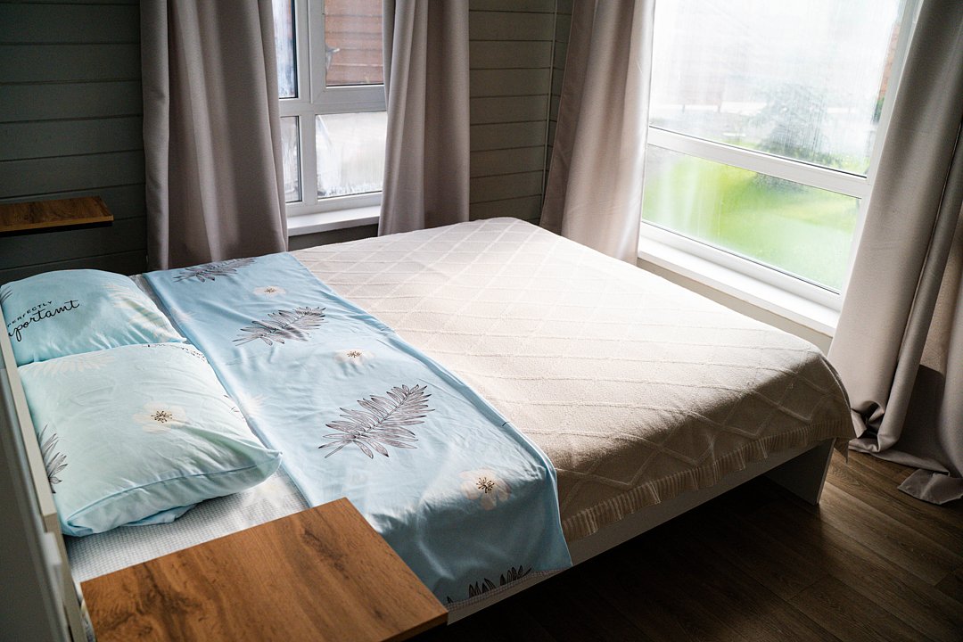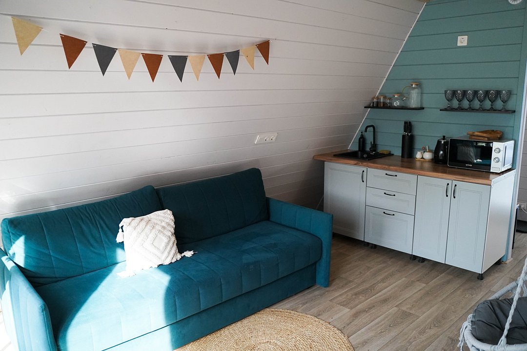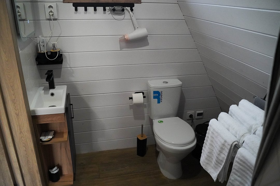 В домике есть всë необходимое для комфортного отдыха: бытовая техника, постельное бельё и полотенца, средства личной гигиены, дополнительные подушки и одеяла.