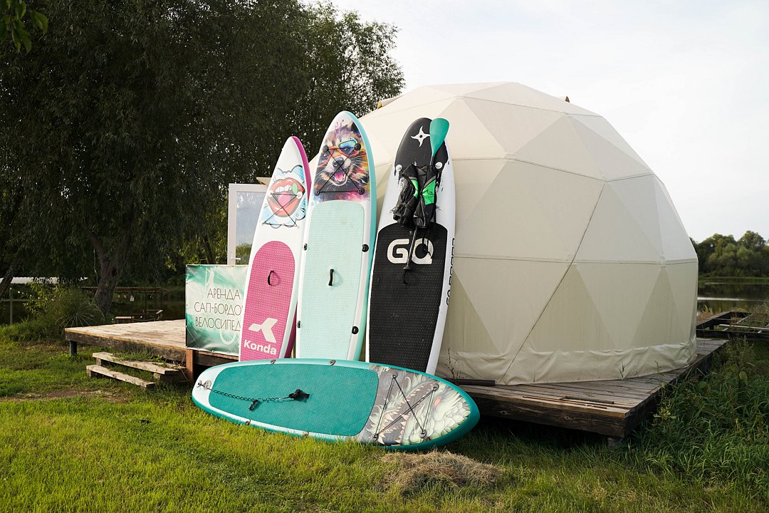 Во время пребывания в глэмпинге «Озерное» вас ждут разнообразные активности на свежем воздухе, рыбалка и катание на сап-бордах. Ценителям спокойного отдыха предлагается насладиться русской баней, расслабиться в банных чанах или провести время в уютных зонах отдыха с озерными пейзажами под природные звуки. Для маленьких гостей обустроена большая и безопасная детская площадка.