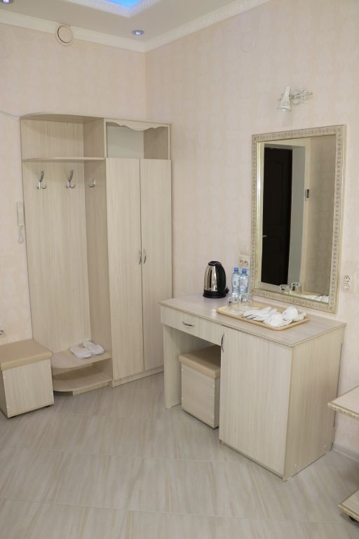 спутниковое телевидение, кабельное телевидение, Wi-Fi, холодильник, кондиционер, фен, будильник, утюг, ванная комната, ванная с джакузи, банные полотенца, тапочки, гигиенические средства, двуспальная кровать, тумбы, стулья, шкаф для одежды, журнальный столик, зеркало, пуфики, чайный набор, сейф, минеральная вода, чайник, унитаз, раковина, вид на город, стаканы, туалетный столик, туалетные средства, туалет, диван-кровать, раскладное кресло, телевизор с плоским экраномВ гостиничном номере