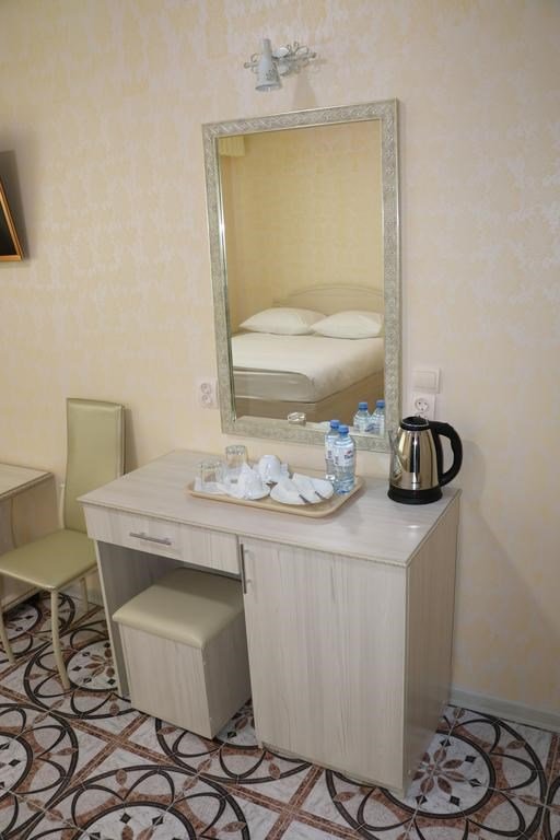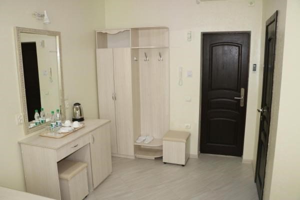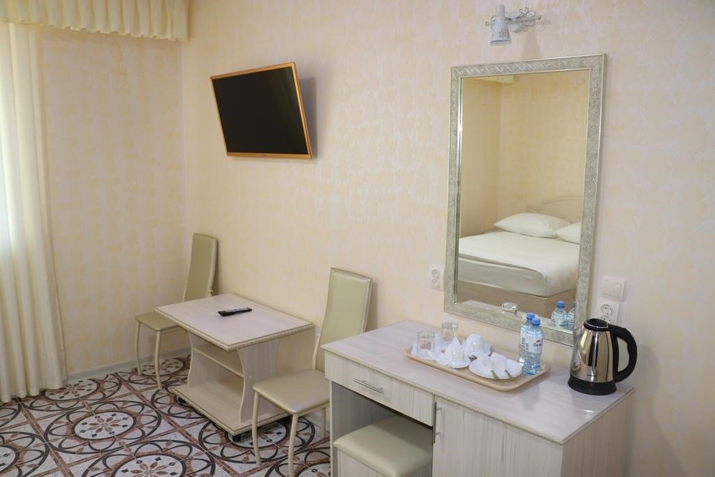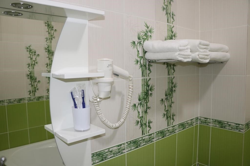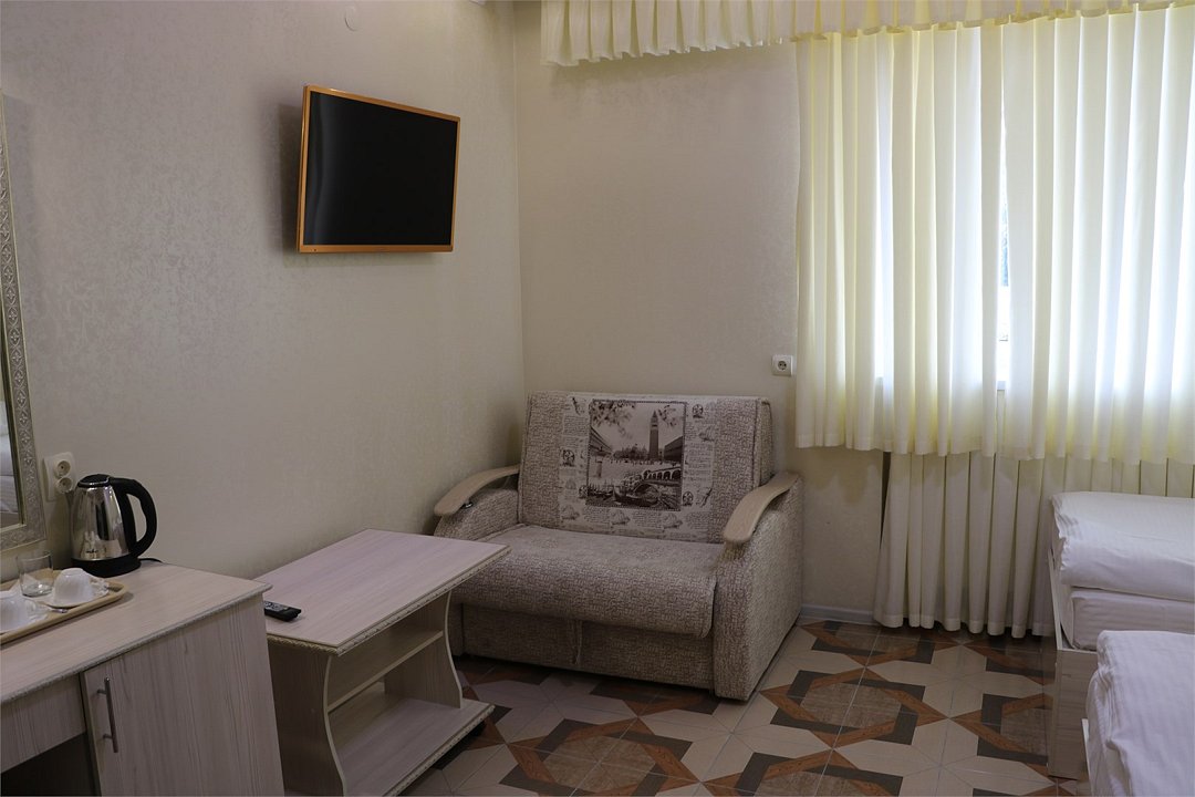 спутниковое телевидение, кабельное телевидение, Wi-Fi, холодильник, кондиционер, фен, будильник, утюг, ванная комната, санузел, банные полотенца, тапочки, гигиенические средства, две односпальные кровати, тумбы, шкаф для одежды, журнальный столик, зеркало, пуфики, звуконепроницаемые стены и окна, чайный набор, сейф, минеральная вода, чайник, унитаз, раковина, вид на город, стаканы, туалетный столик, туалетные средства, туалет, диван-кровать, раскладное кресло, телевизор с плоским экраномВ номере