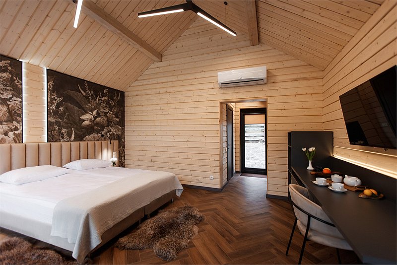 Барнхаус выполнен в европейском стиле. В каждом дизайнерская мебель из экологичных материалов ,спальня-гостиная с кровать King size. Идеальный выбор для романтического уикенда и новых эмоций.