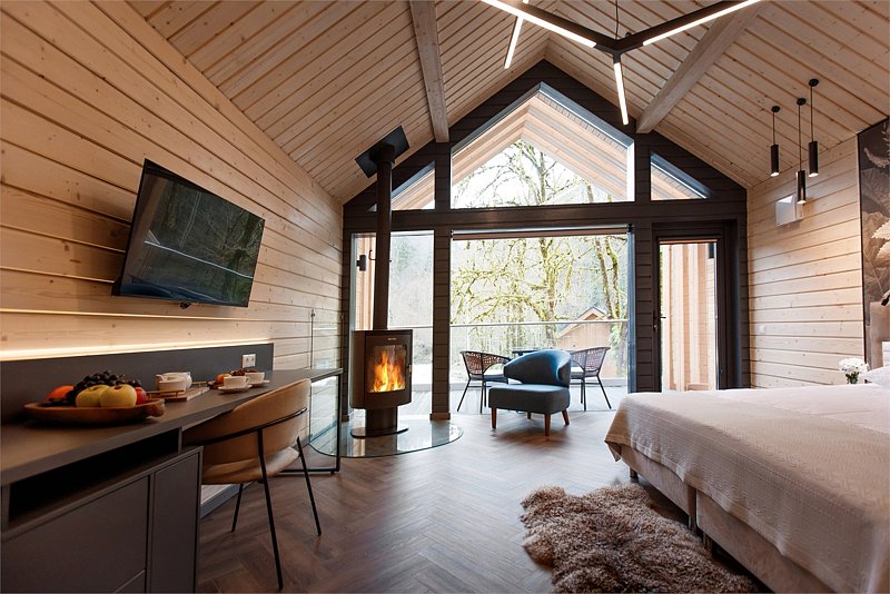 В каждом барнхаусе: Wi-Fi, телевизор, туалет/душ, холодильник, чайник, фен, утюг и приятные мелочи для уюта. Также для вашего комфорта установлены теплые полы, камины и кондиционеры.