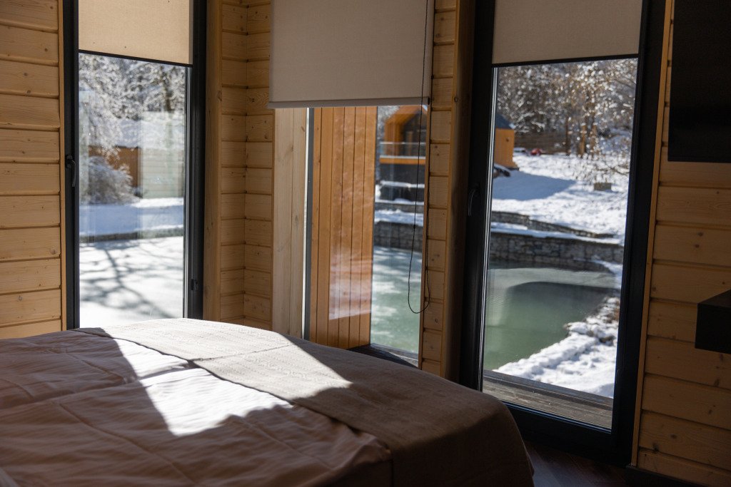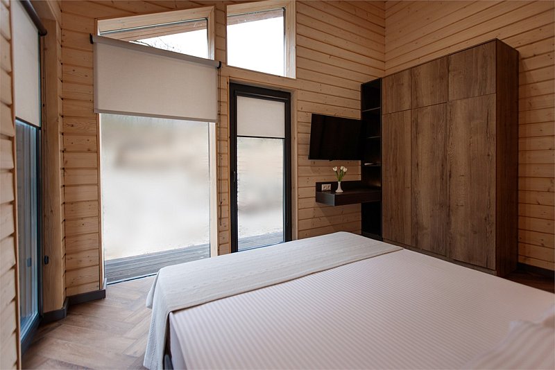 Двухместный коттедж Premium с красивым видом из окна двуспальная кровать