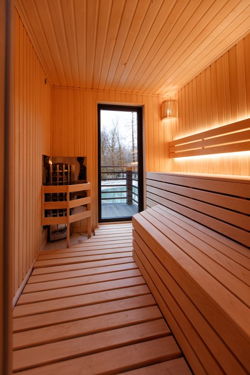 Полноценный четырехкомнатный барнхаус премиум-класса c собственной террасой, сауной и джакузи на террасе с подогревом. Такое сочетание позволит проводить уединённые завтраки с видом на лес и реку, устраивать досуг с детьми, проводить банные процедуры в собственной сауне. Идеальный отдых для большой компании.