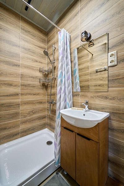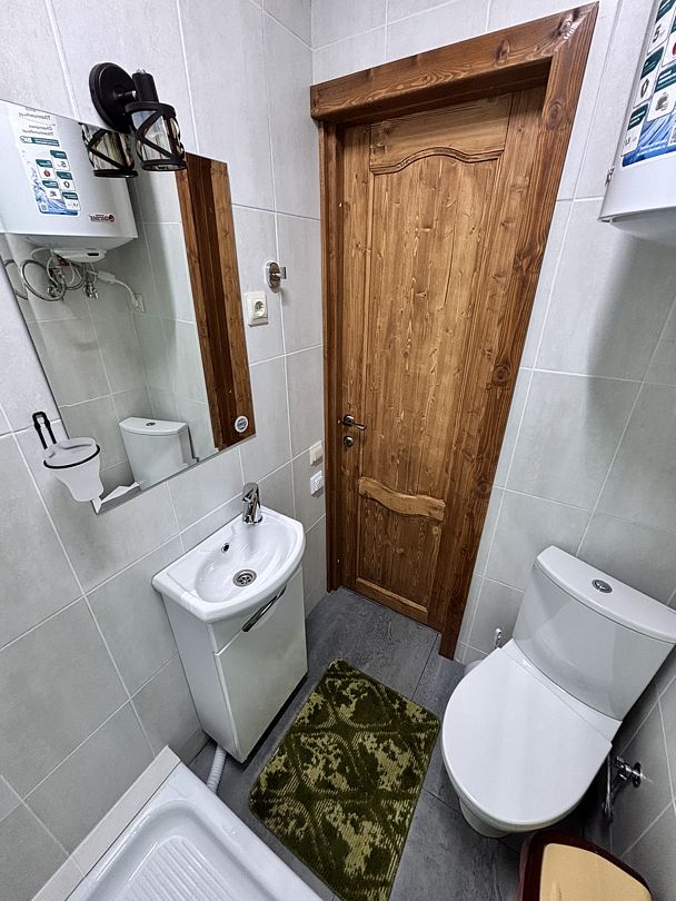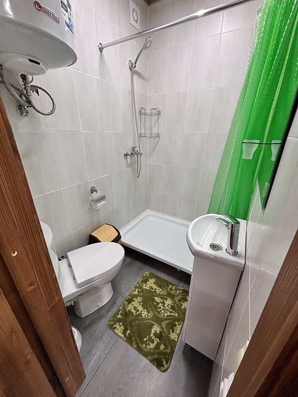 Санузел с душевой, водонагревателем на 80 л, средства личной гигиены.