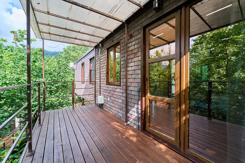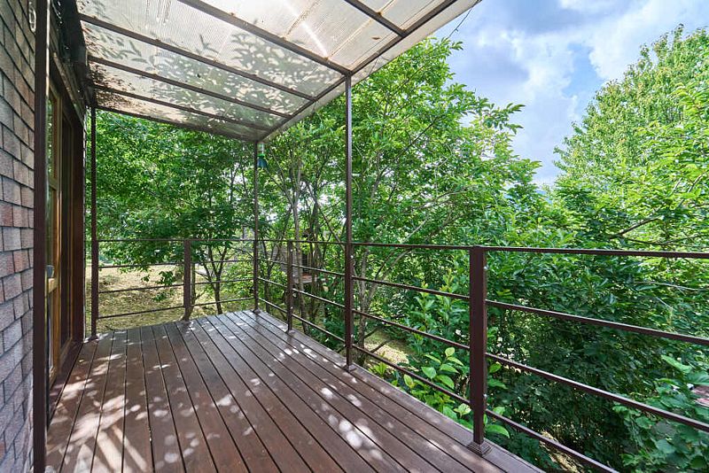 Уютный дом с закрытой террасой и прекрасными панорамными видами, выполненные из экологичных материалов.