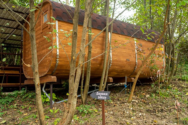 Инфраструктура: чан, зона отдыхаПогрузитесь в атмосферу уюта в русской бане с чаном и крытой зоной отдыха, где вы сможете расслабиться после дня, проведённого на свежем воздухе.
