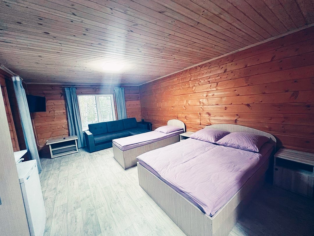 В номерном фонде представлены комнаты категории «Стандарт», «Полулюкс» и «Люкс», а также коттеджи и дома типа A-frame. Проживание включает двукратное питание.