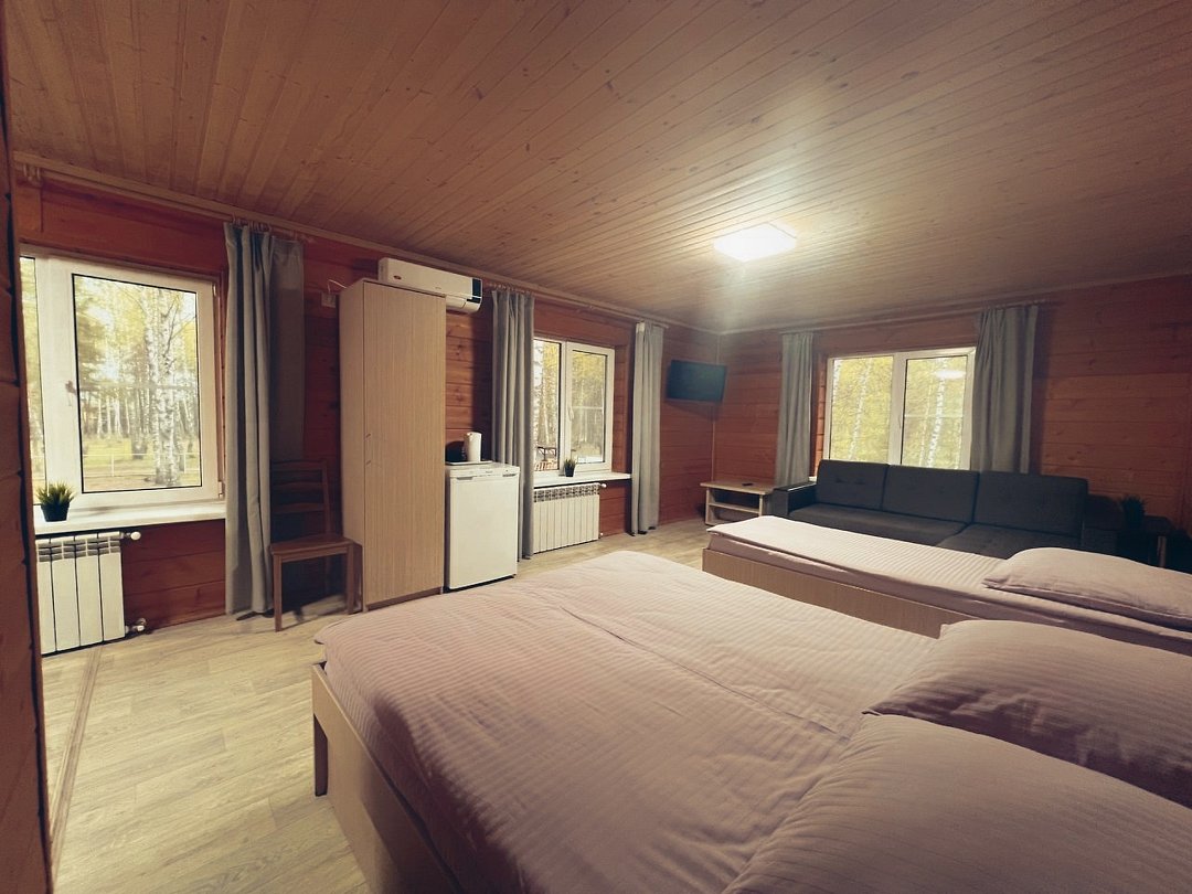 4 номера класса «Люкс двухэтажный» на базе отдыха «Щукино» расположены в отдельном коттедже недалеко от основного корпуса.